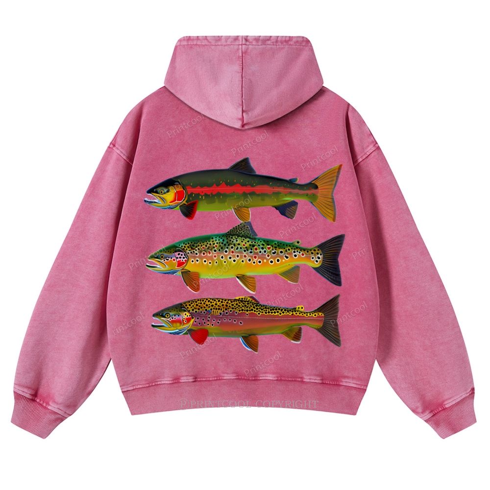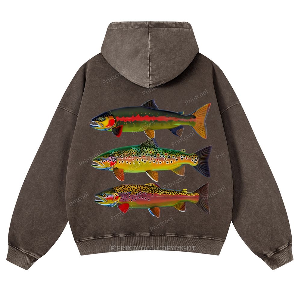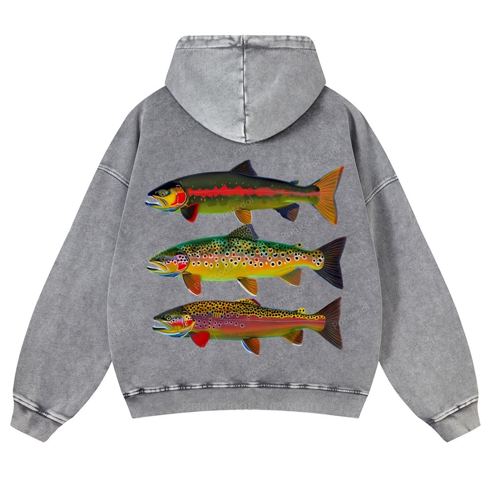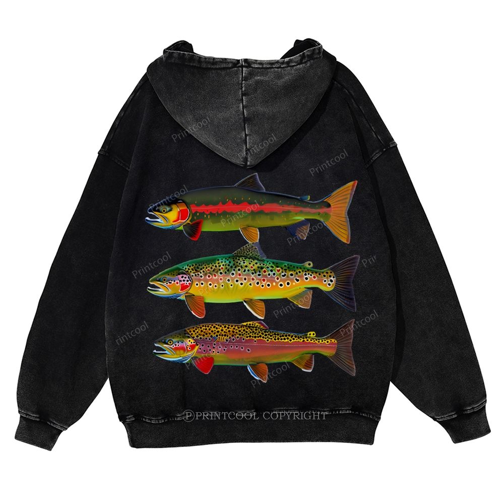 American Trout Unisex Washed Cotton Zip Up Hoodie