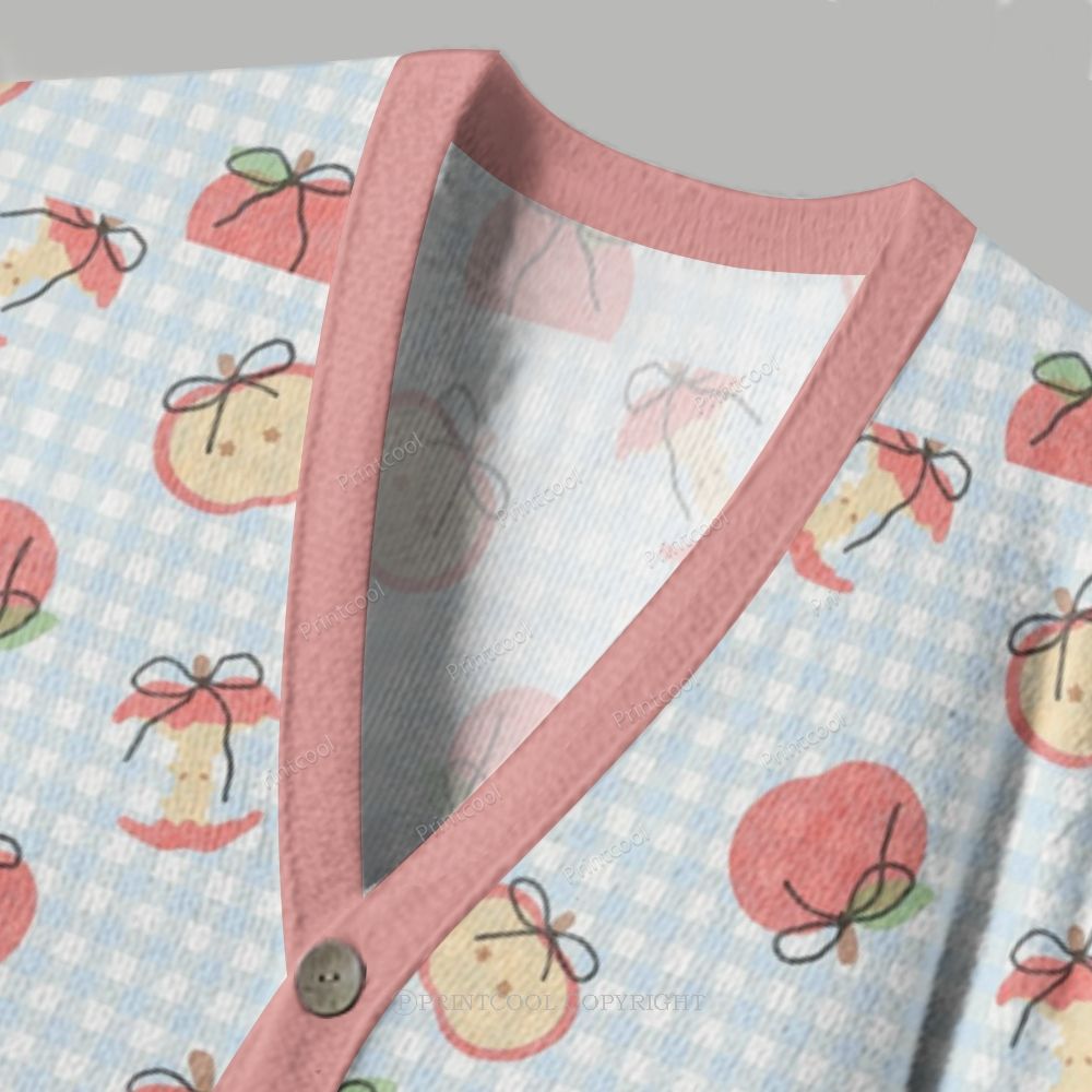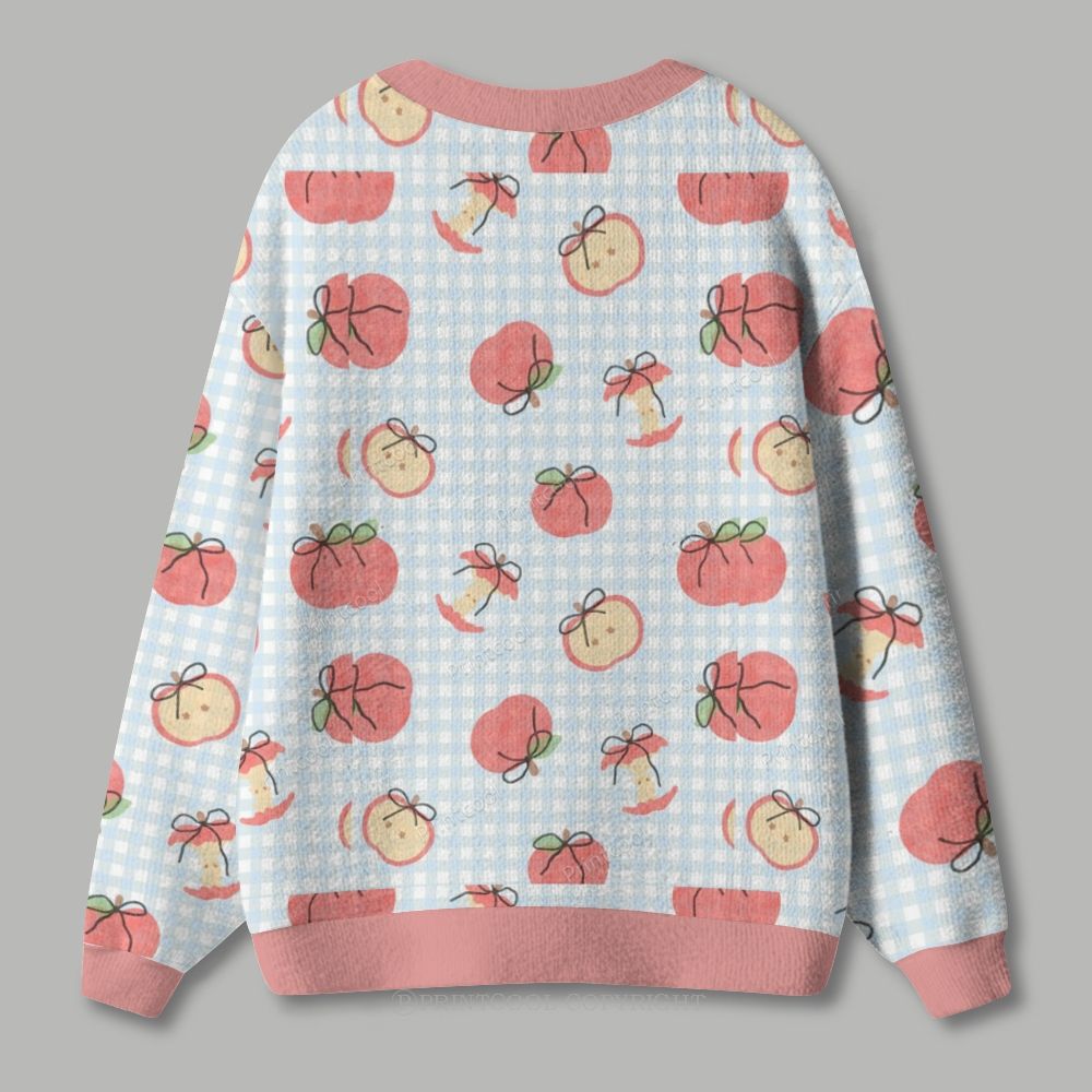 Apple Gingham Pattern Ugly Cardigan Sweater