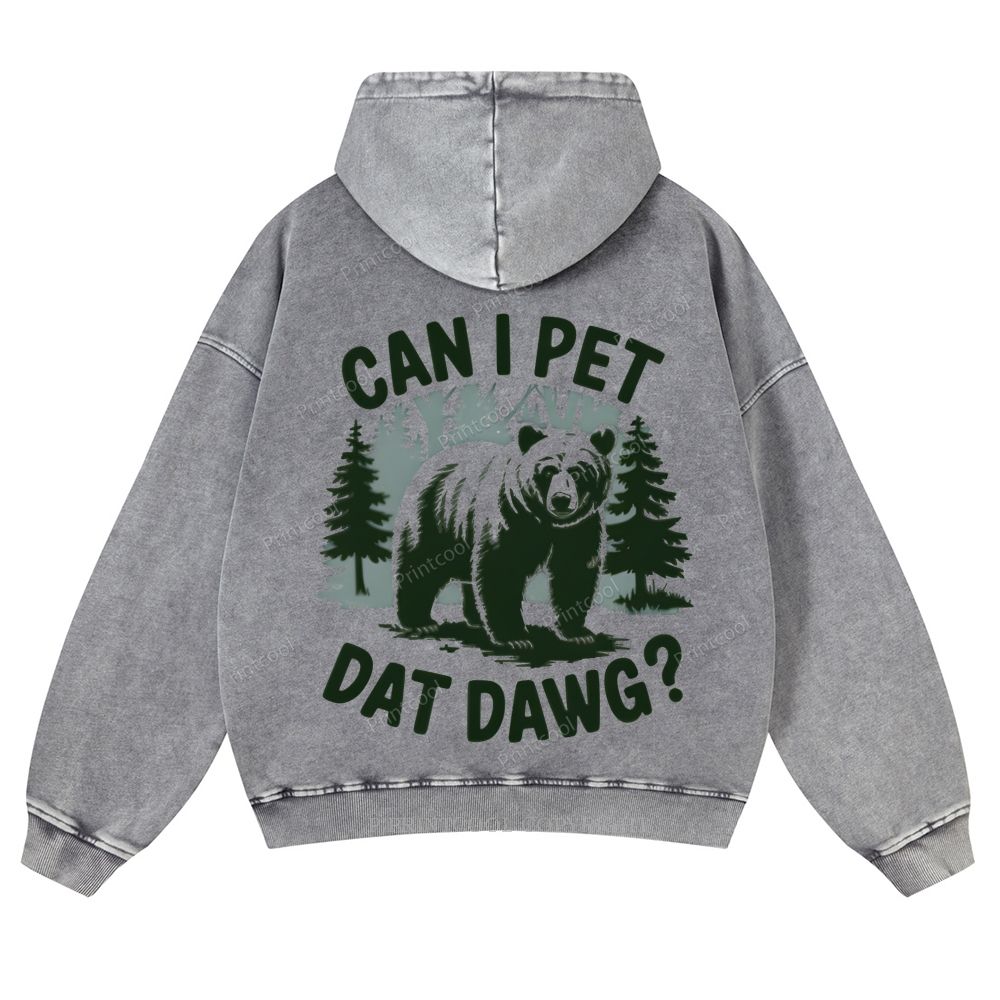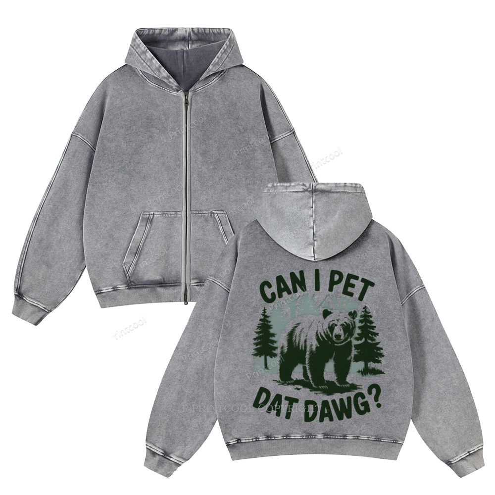 Can I Pet Dat Dawg? Bear Design Unisex Washed Cotton Zip Up Hoodie
