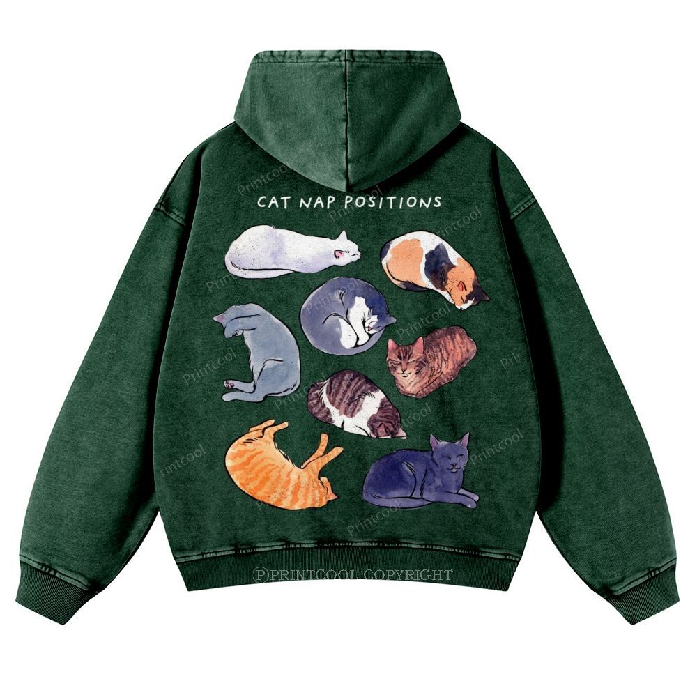 Cat Nap Positions Casual Washed Hoodie