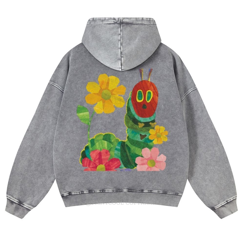 Caterpillar and Flower Collage Casual Washed Hoodie