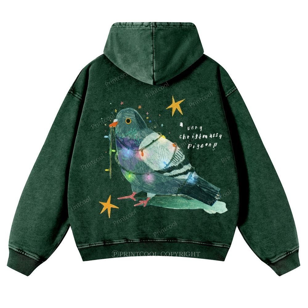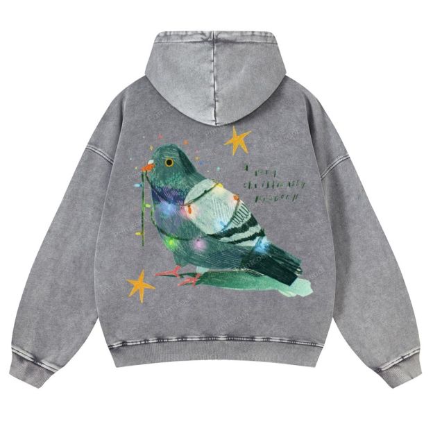 Christmas Themed Pigeon With Lights Casual Washed Hoodie