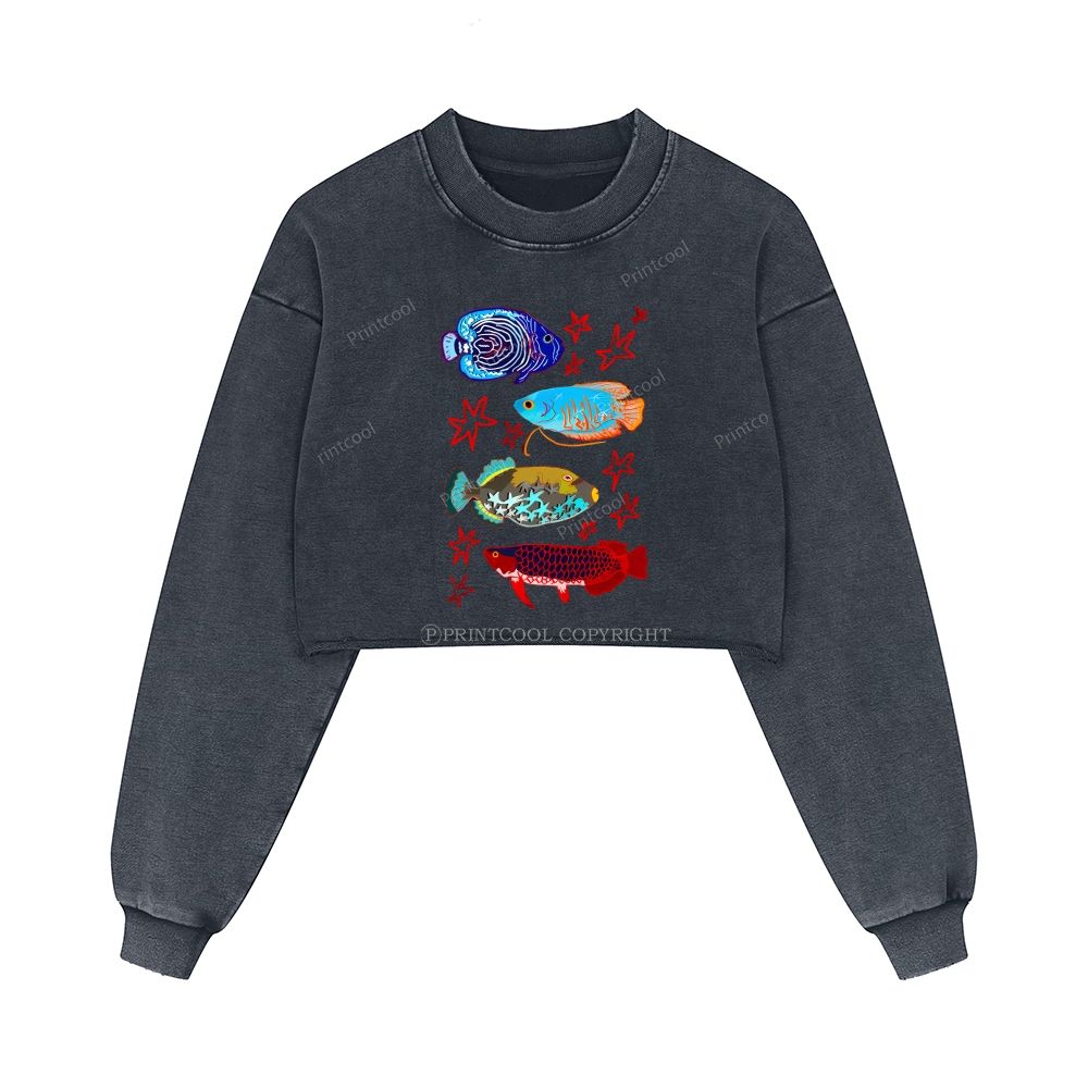 Cute Colorful Fish Washed Crop Sweatshirt