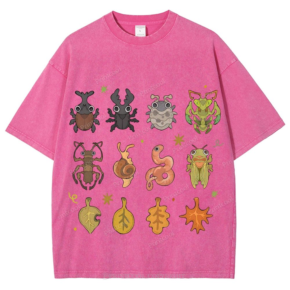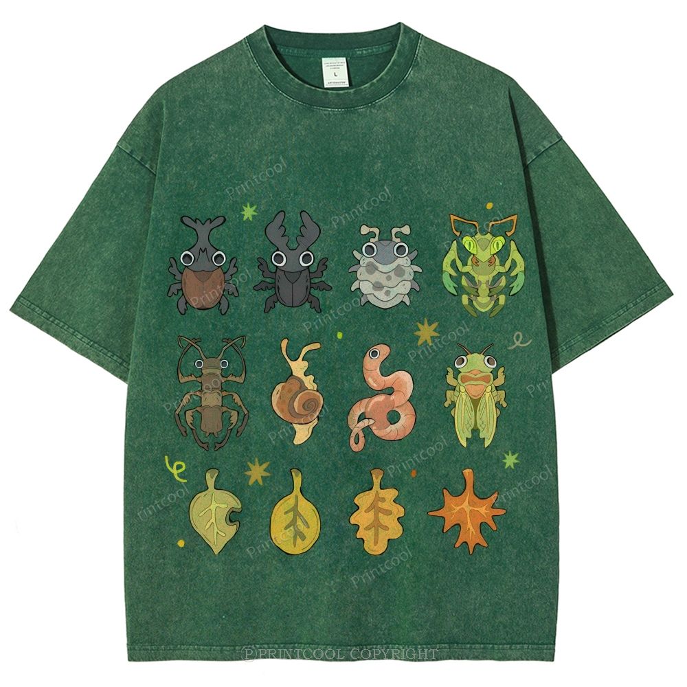 Cute Little Insects And Leaves Unisex Vintage Washed Tee