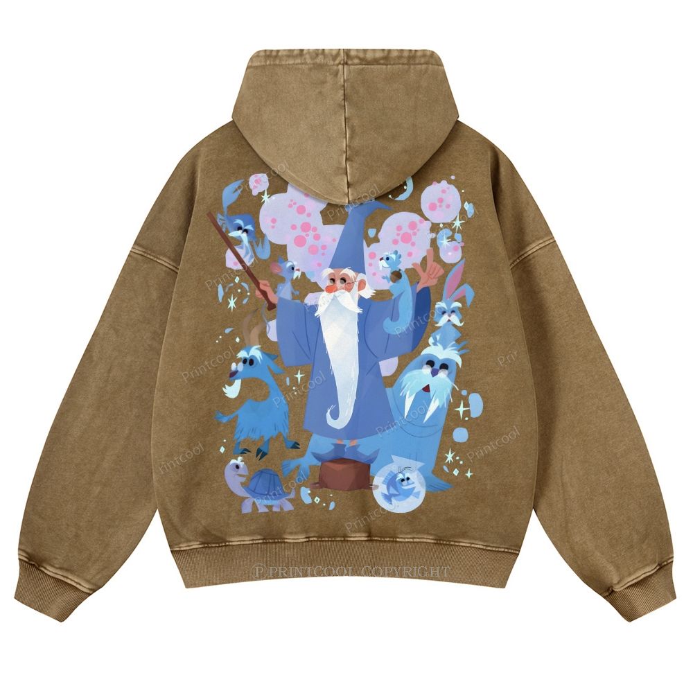 Cute Wizard & Forest Friends Casual Washed Hoodie