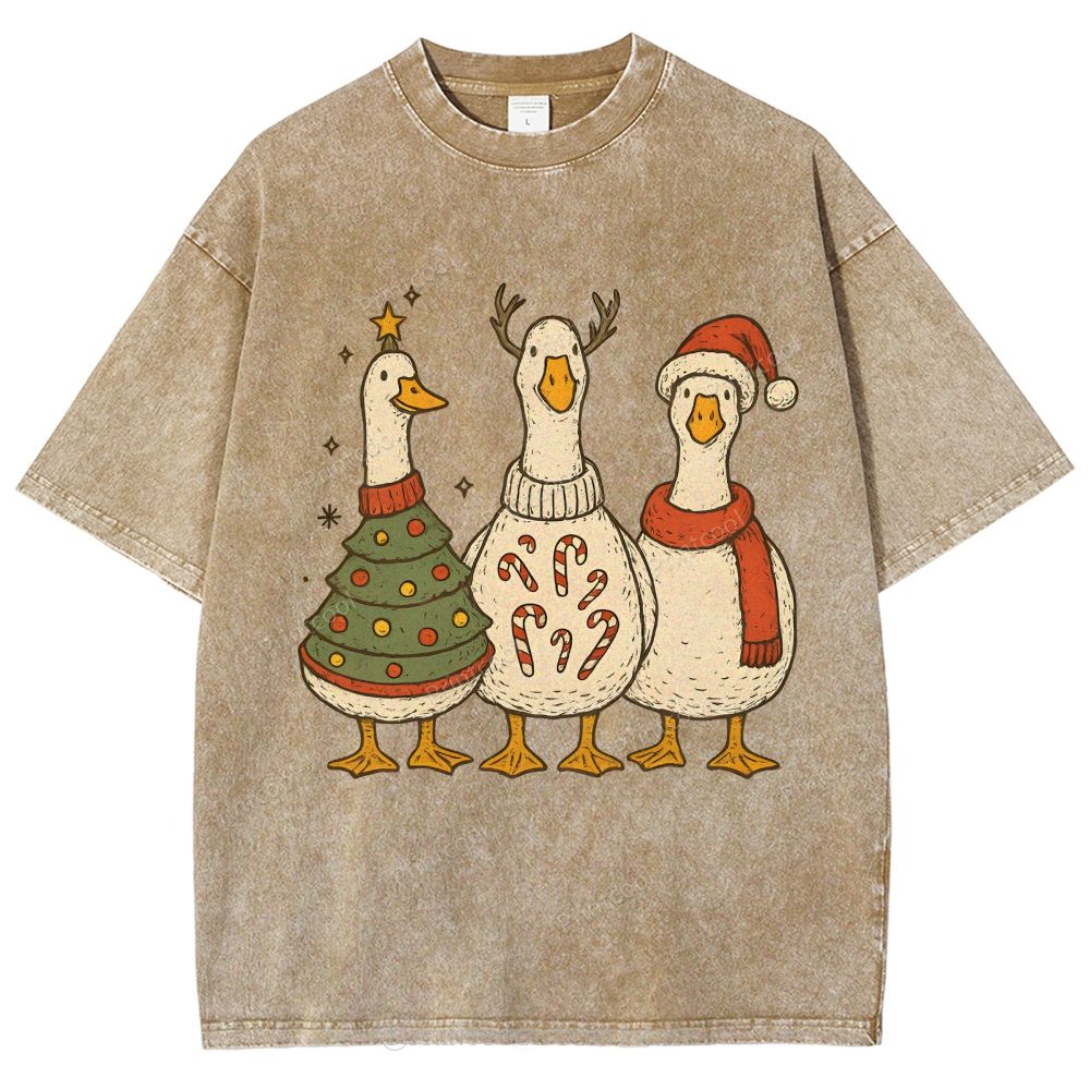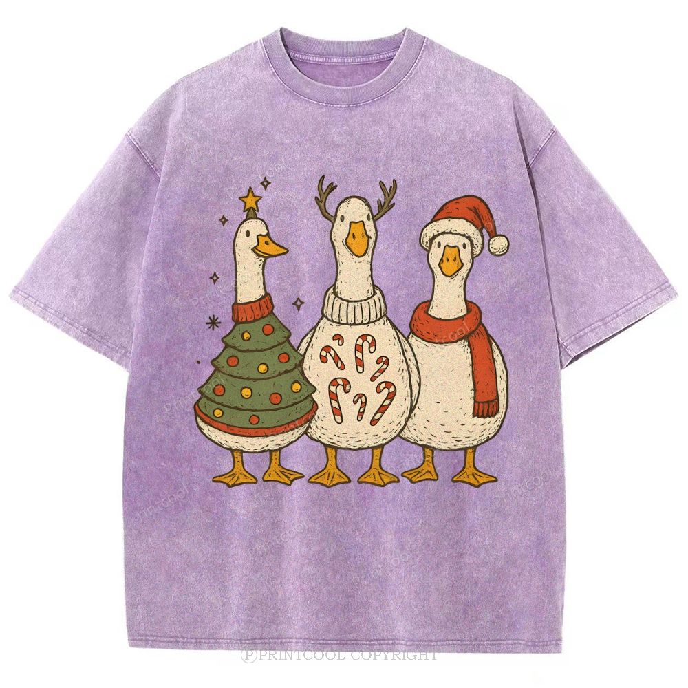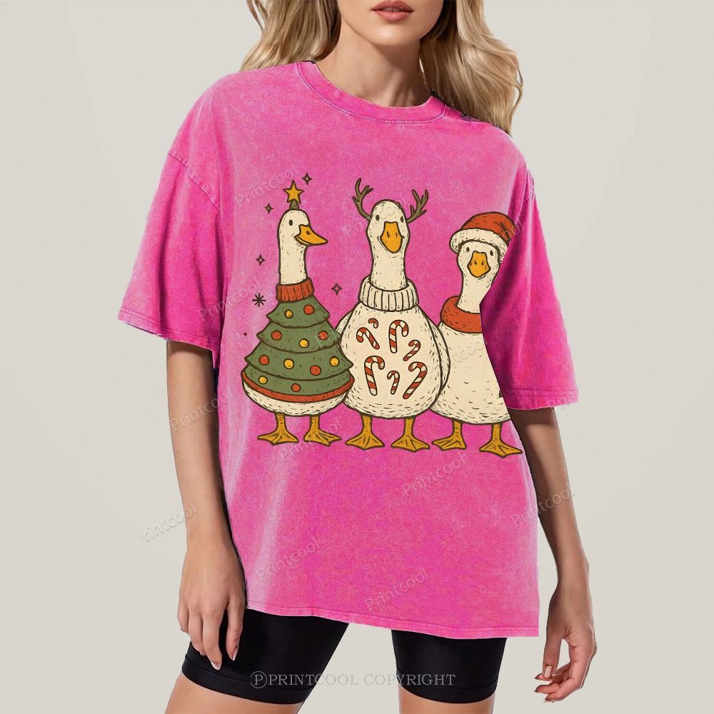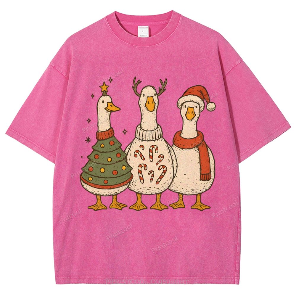 Festive Geese "Merry Goosmas" Unisex Vintage Washed Tee