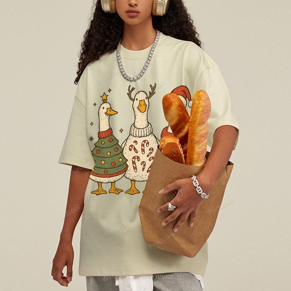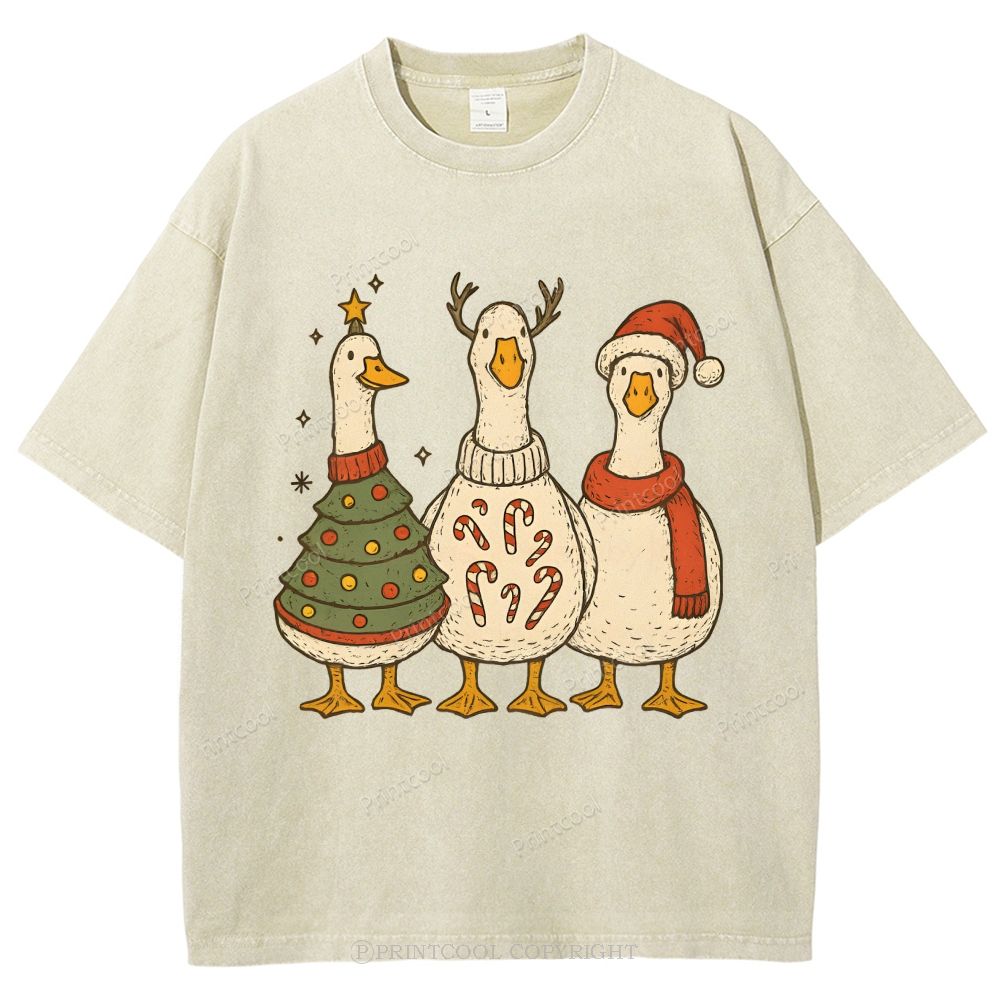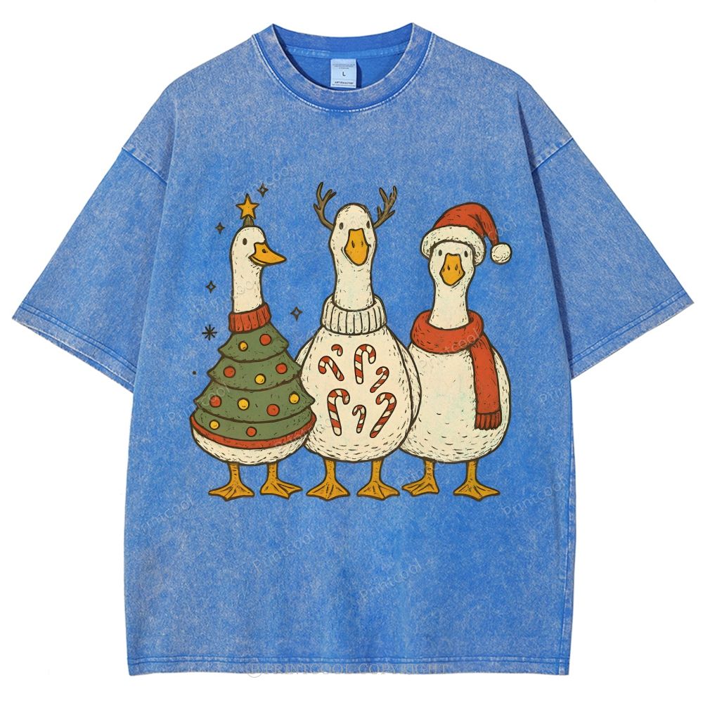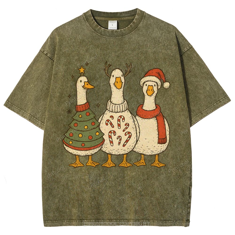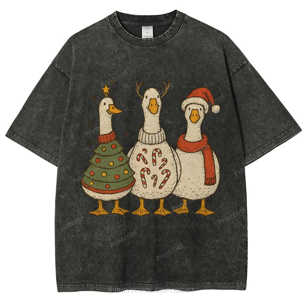 Festive Geese "Merry Goosmas" Unisex Vintage Washed Tee