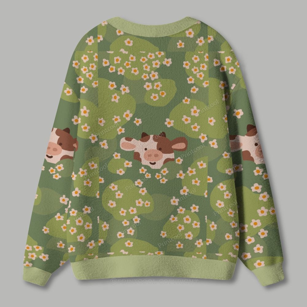 Grassy Meadow Cow Ugly Cardigan Sweater