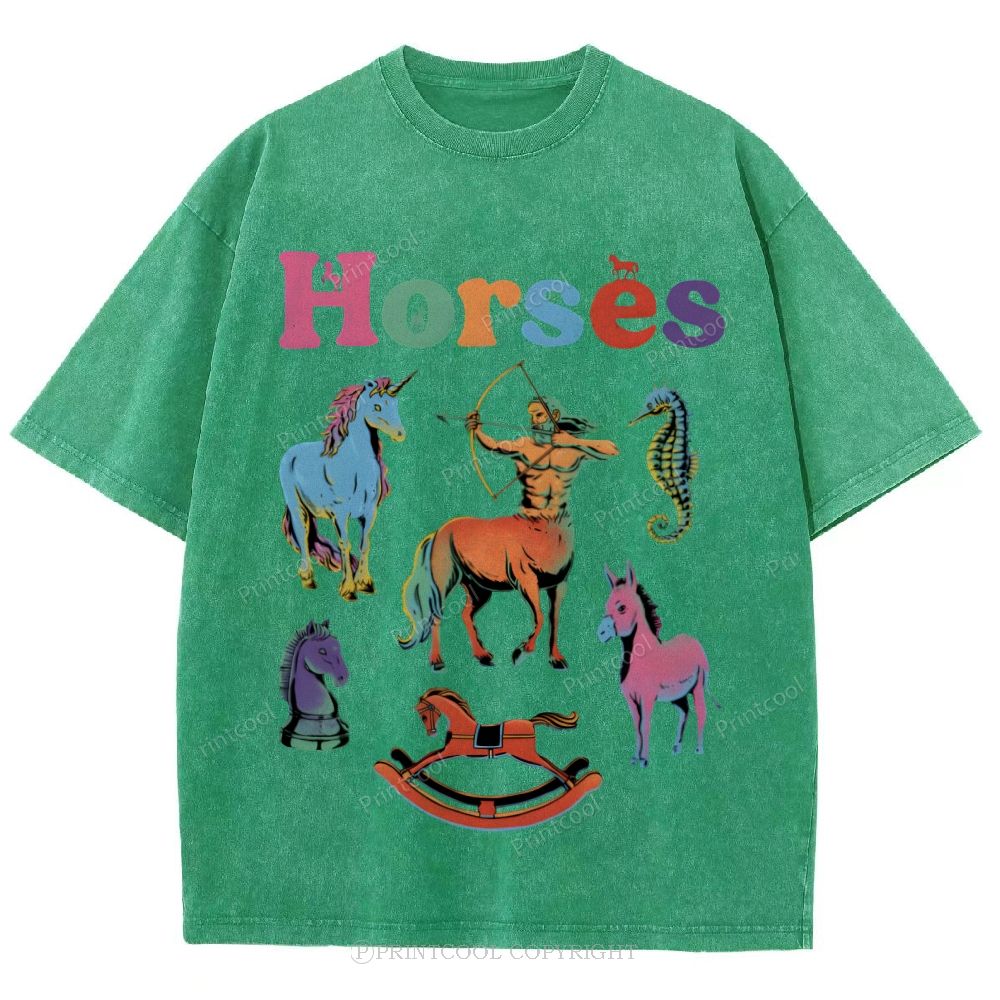 Horse Animal Illustrations Unisex Vintage Washed Tee