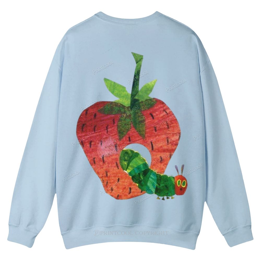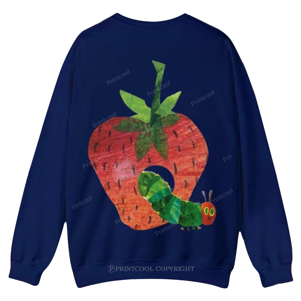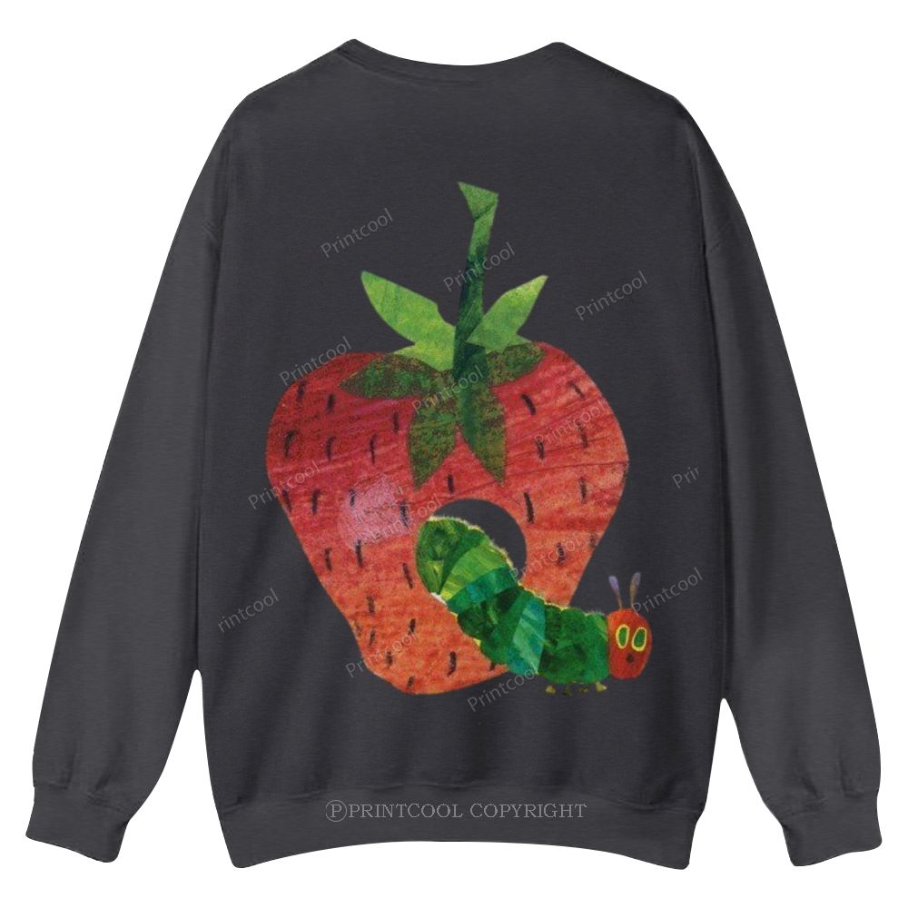 Hungry Caterpillar Strawberry Print Casual Crewneck Sweatshirt