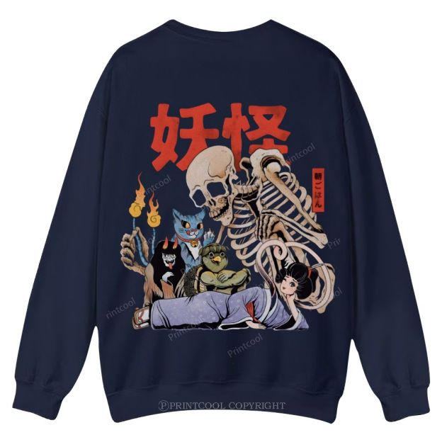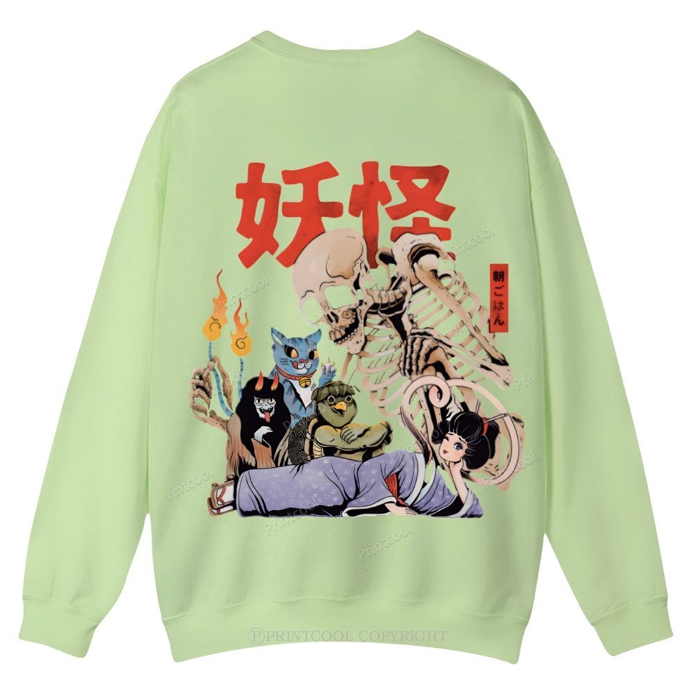Japanese Yokai Breakfast Humor Illustration Casual Crewneck Sweatshirt