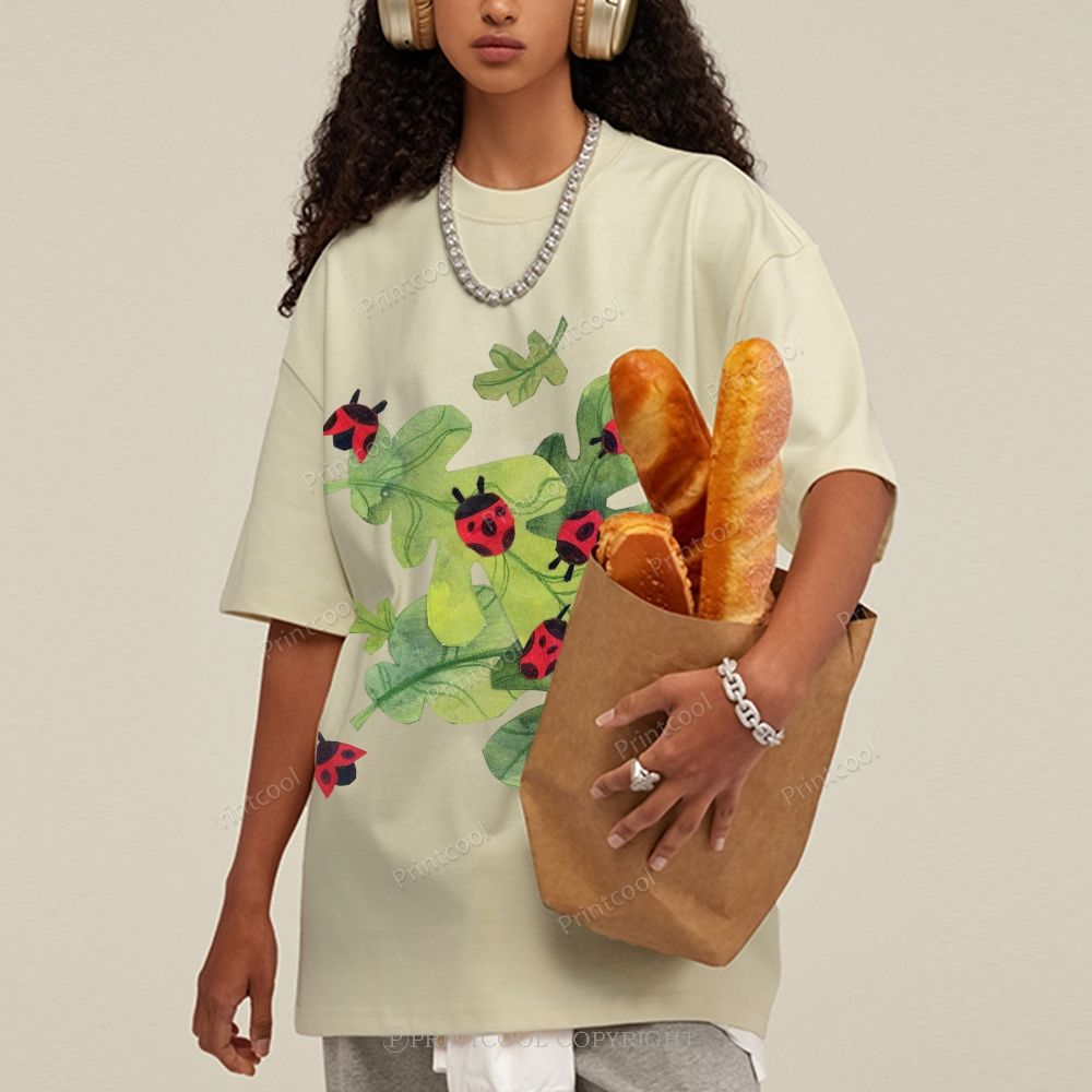 Ladybug On Green Leaves Unisex Vintage Washed Tee
