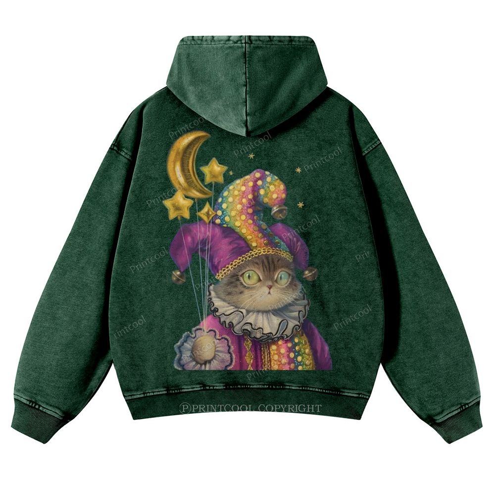 Magic Cat Illustration Casual Washed Hoodie
