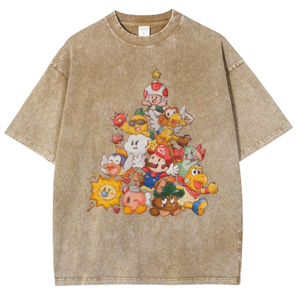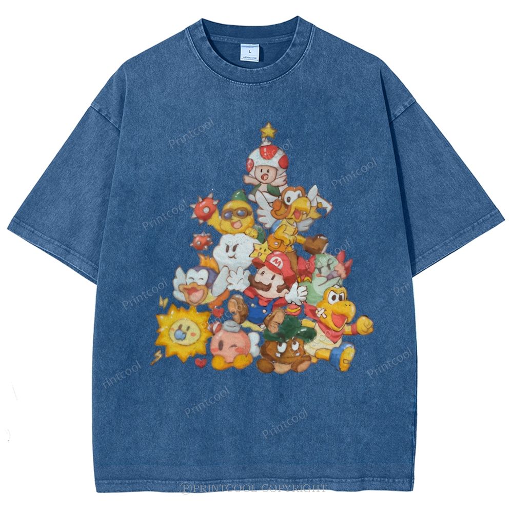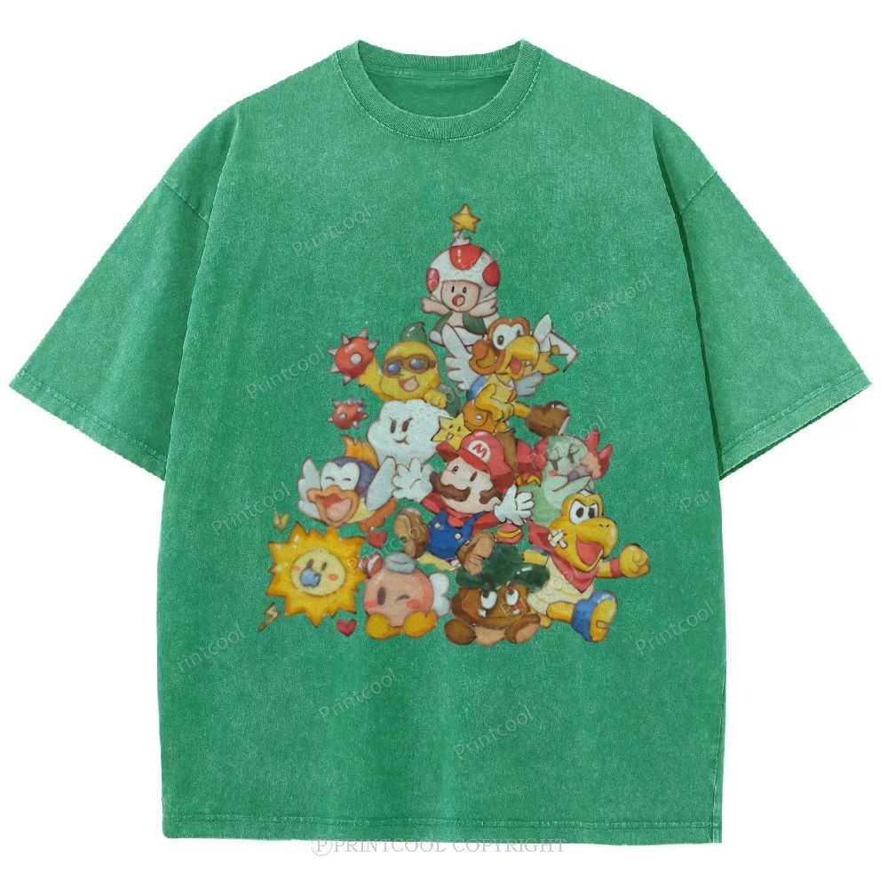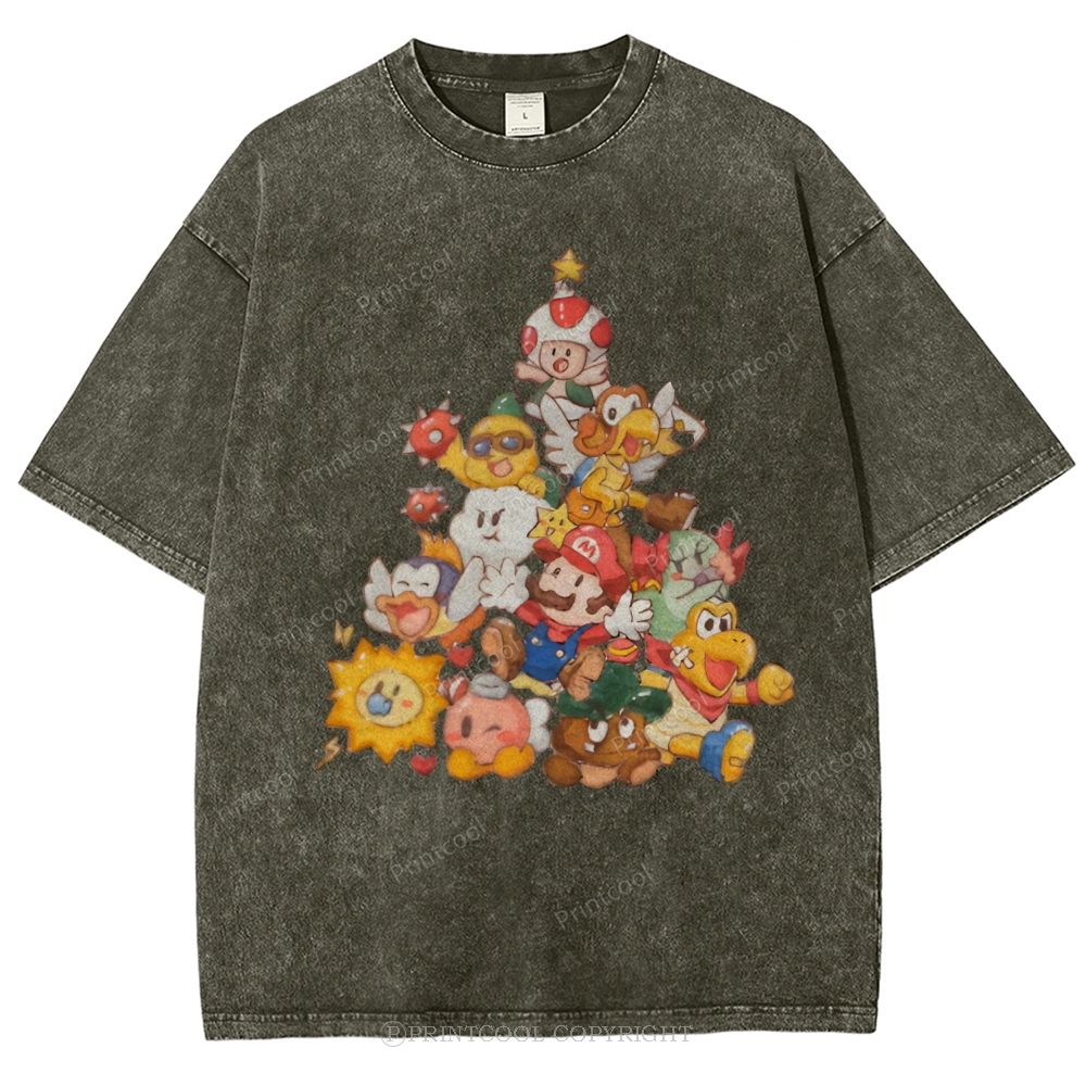 Mushroom Kingdom Christmas Unisex Vintage Washed Tee