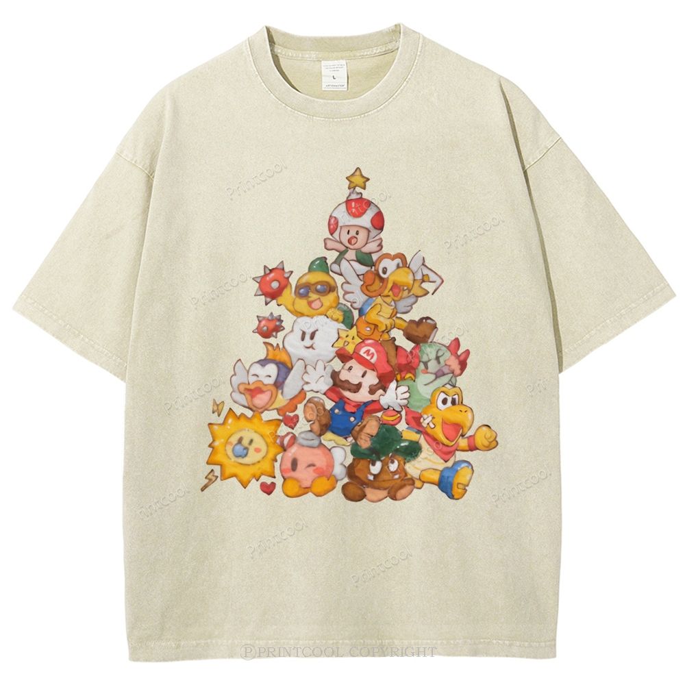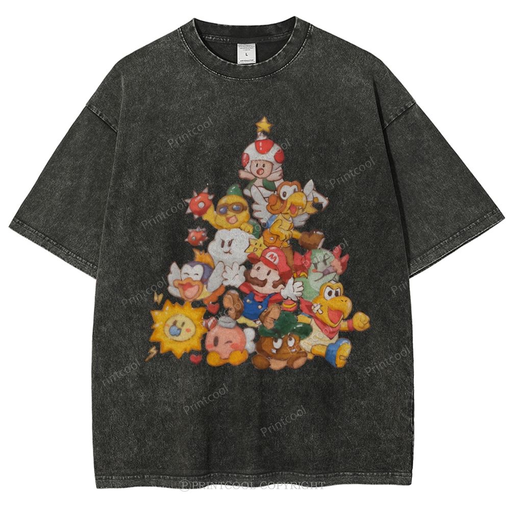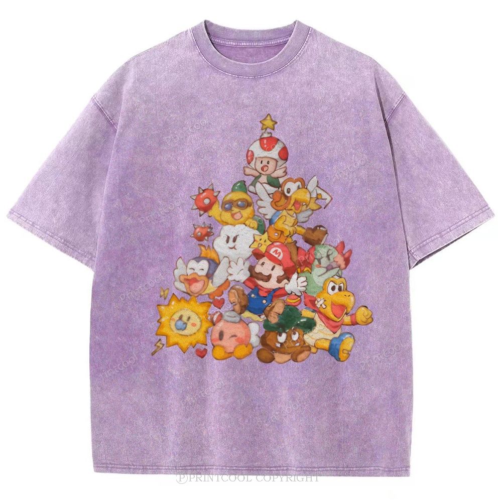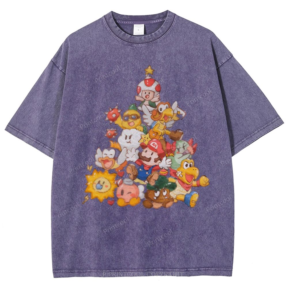 Mushroom Kingdom Christmas Unisex Vintage Washed Tee