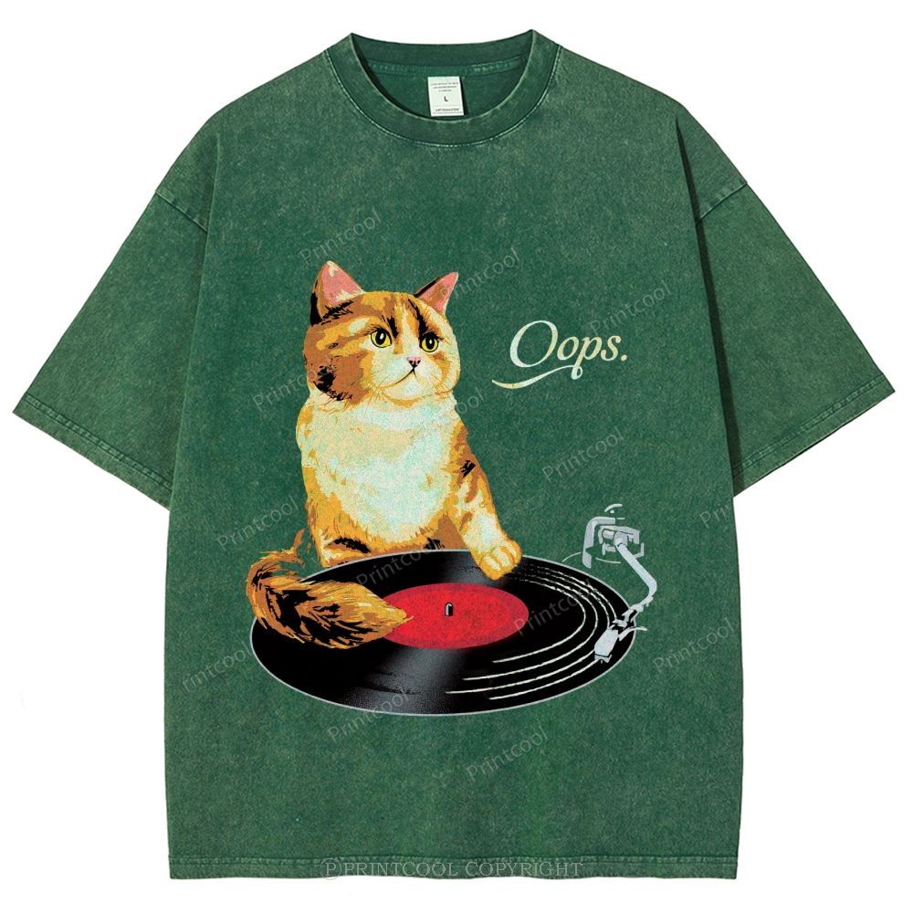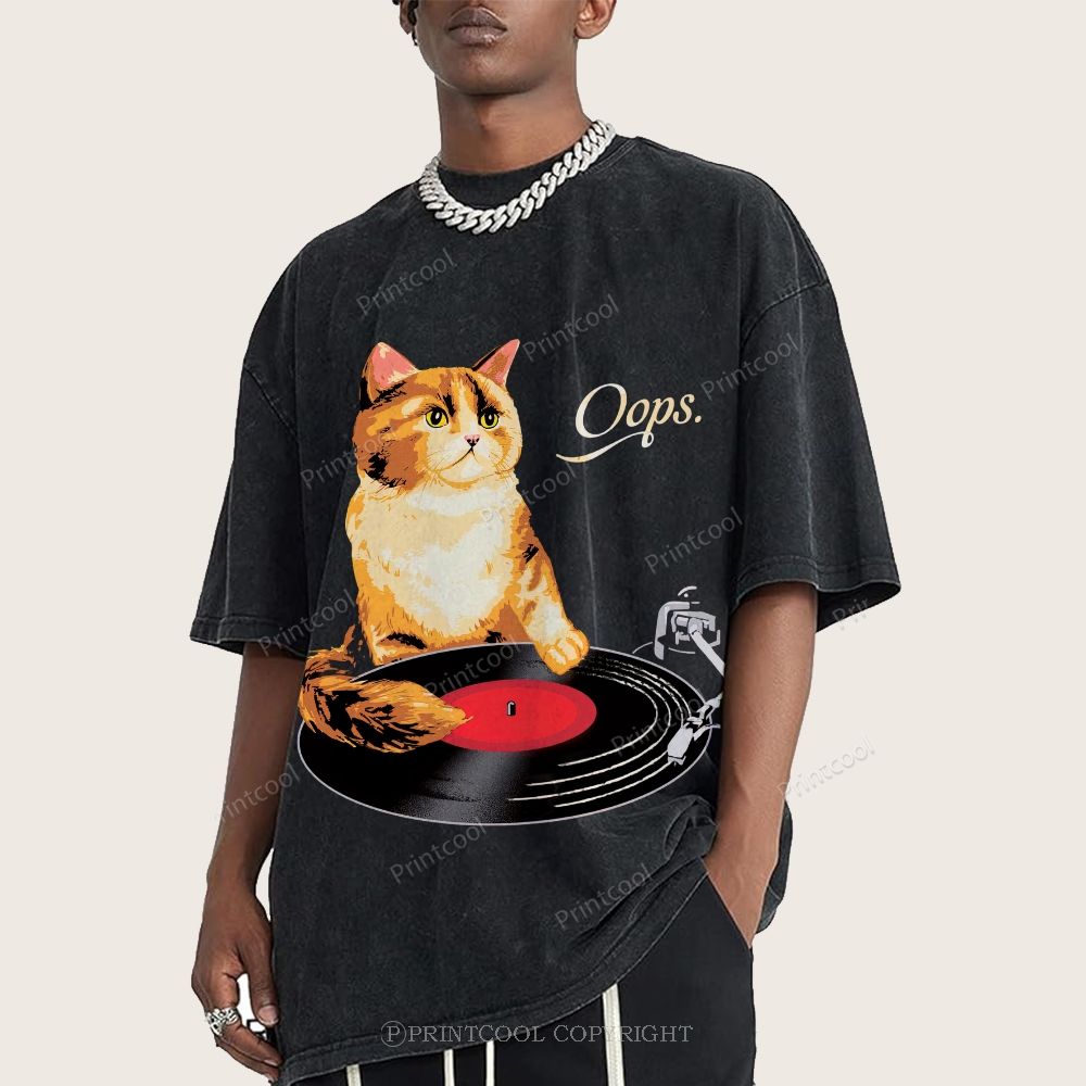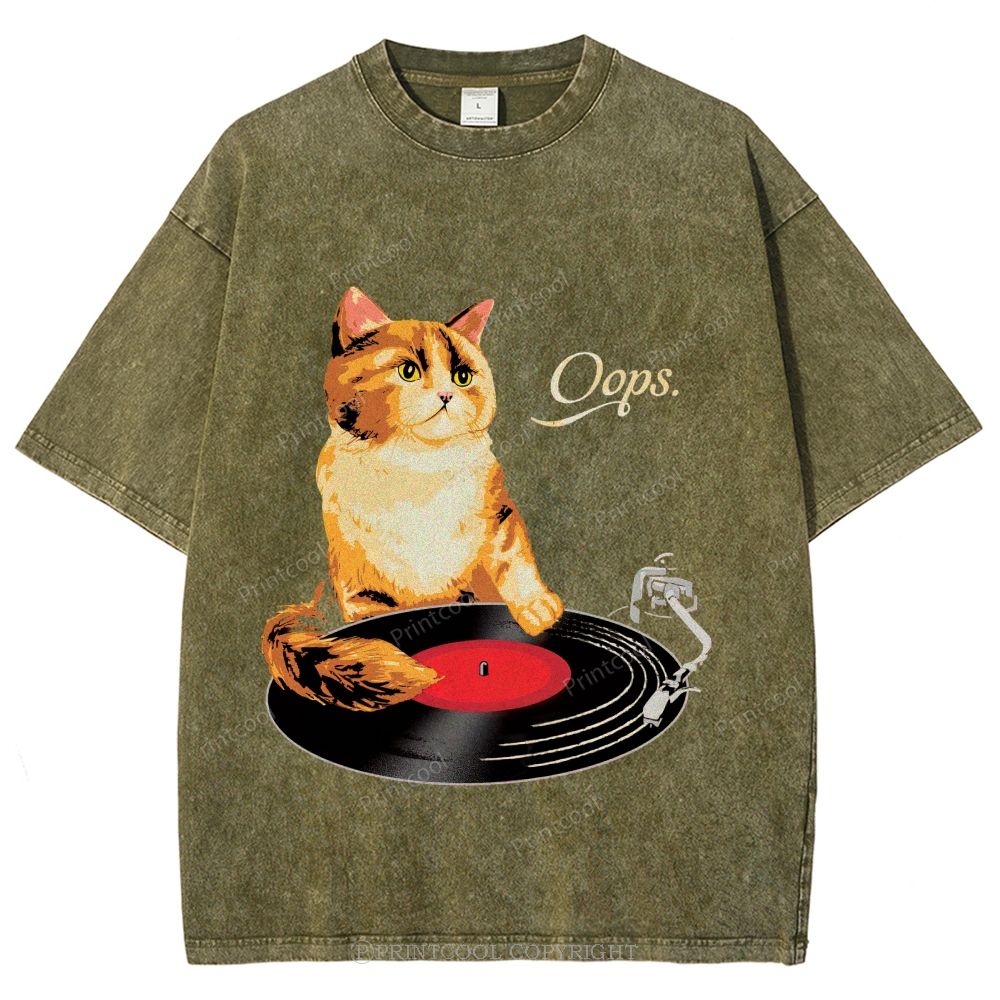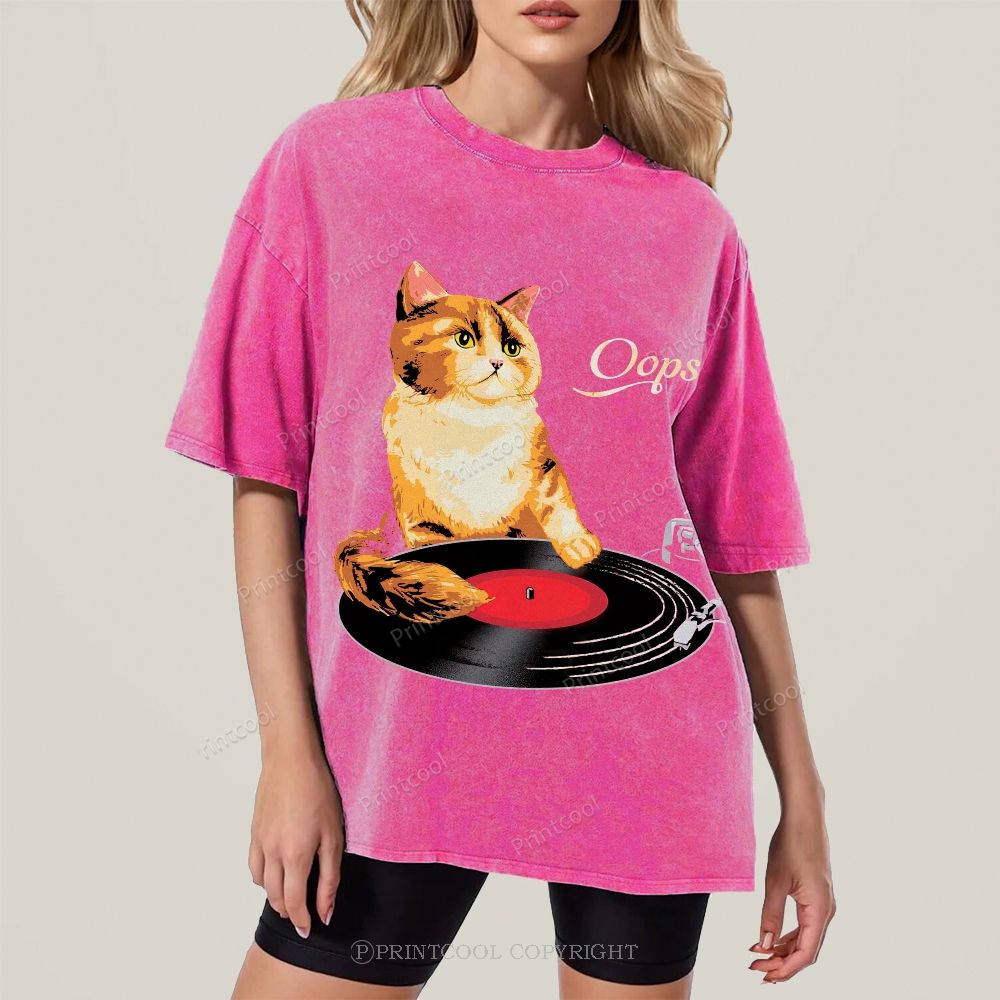 Punk Cat Illustration Unisex Vintage Washed Tee