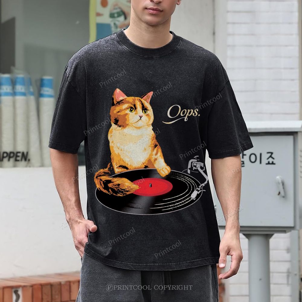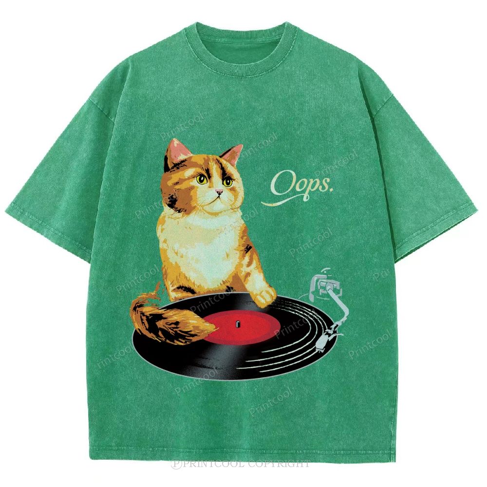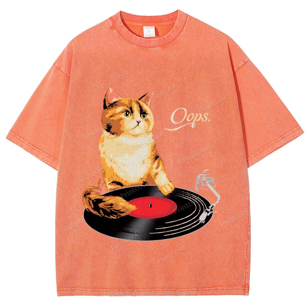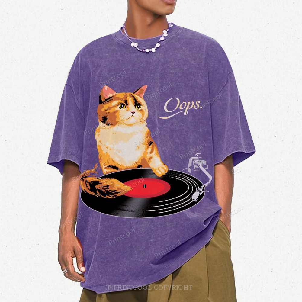Punk Cat Illustration Unisex Vintage Washed Tee