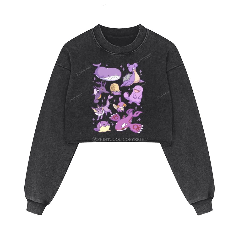 Purple Pokémon Group Washed Crop Sweatshirt