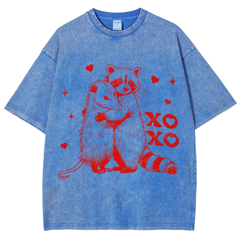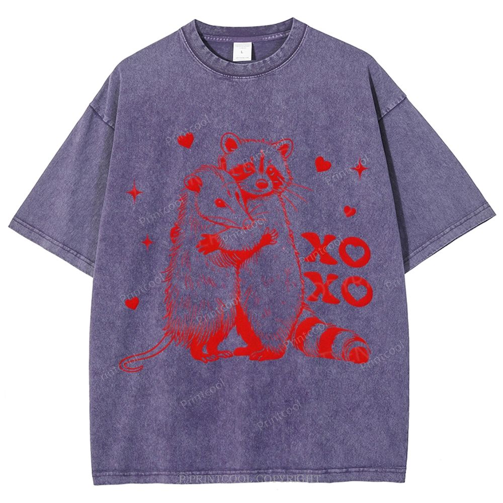 Romantic Raccoon Opossum Hug Unisex Vintage Washed Tee