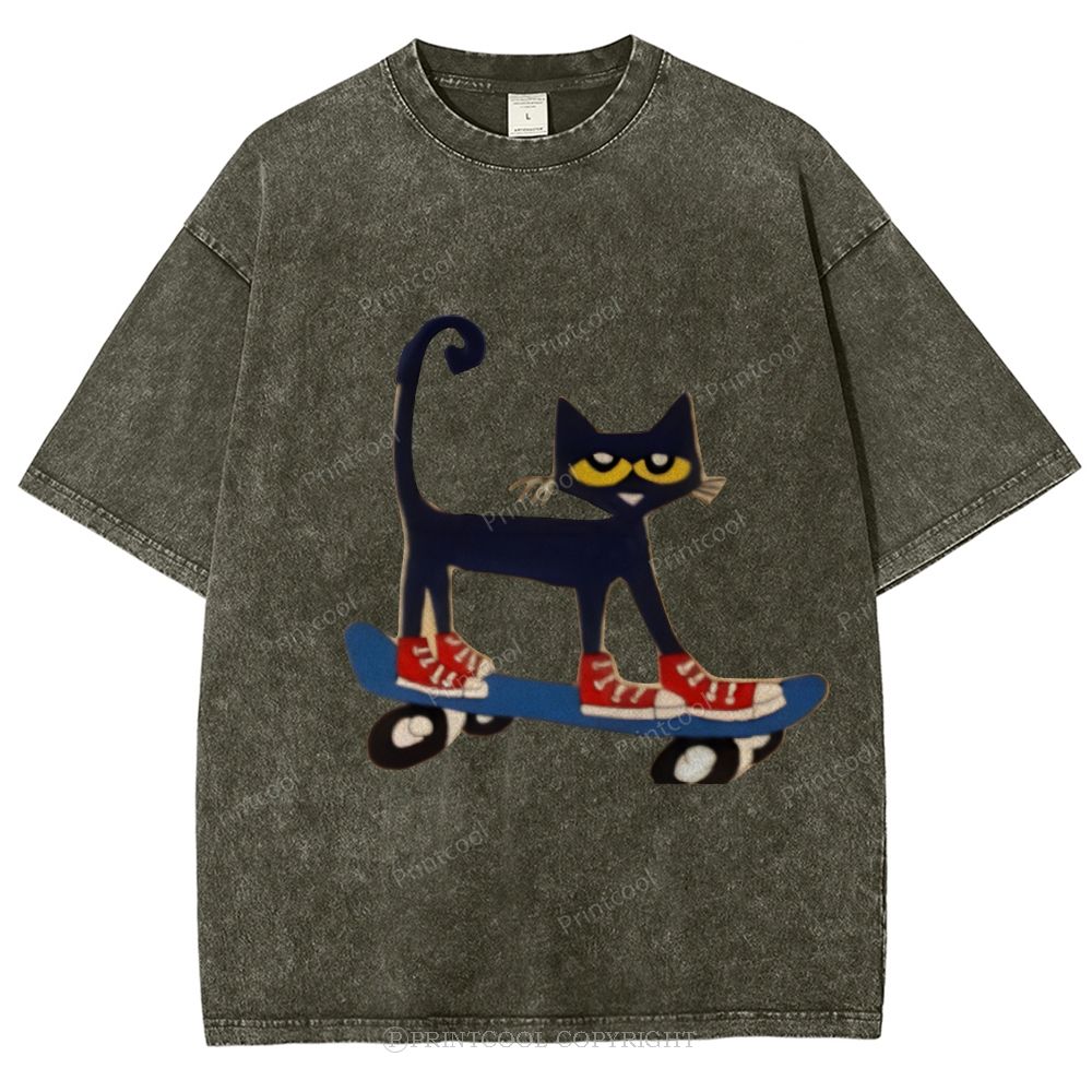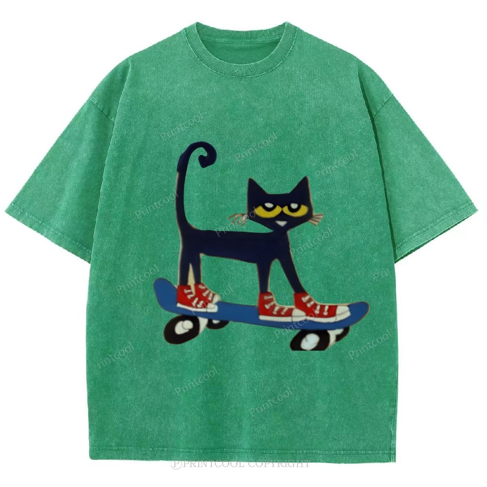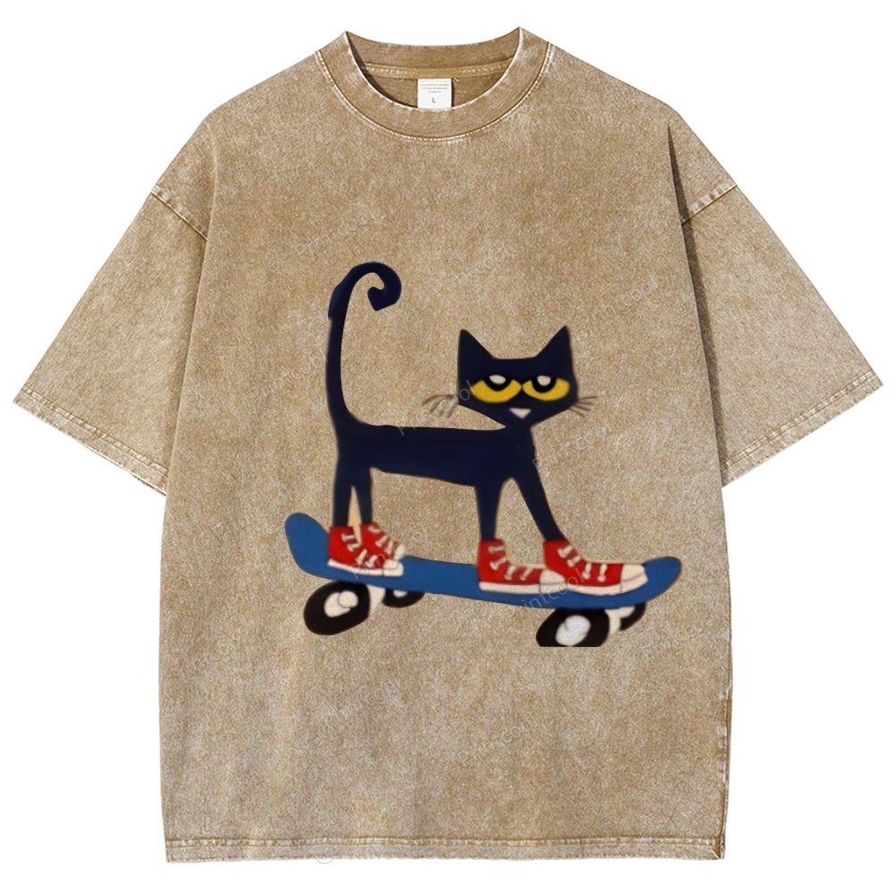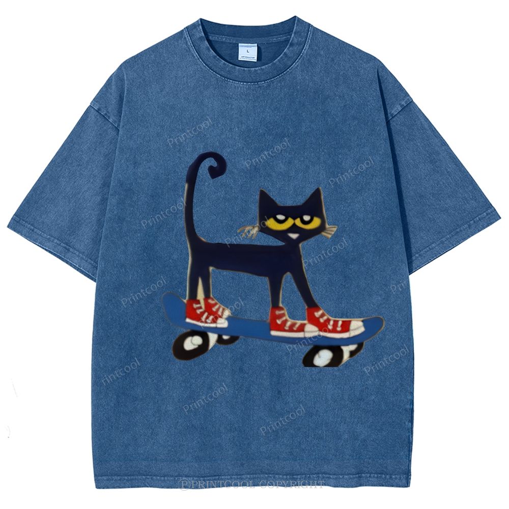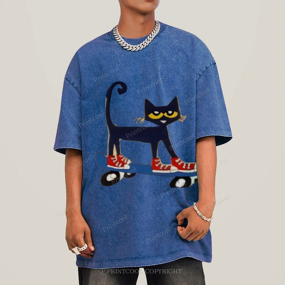 Skateboarding Pete The Cat Unisex Vintage Washed Tee