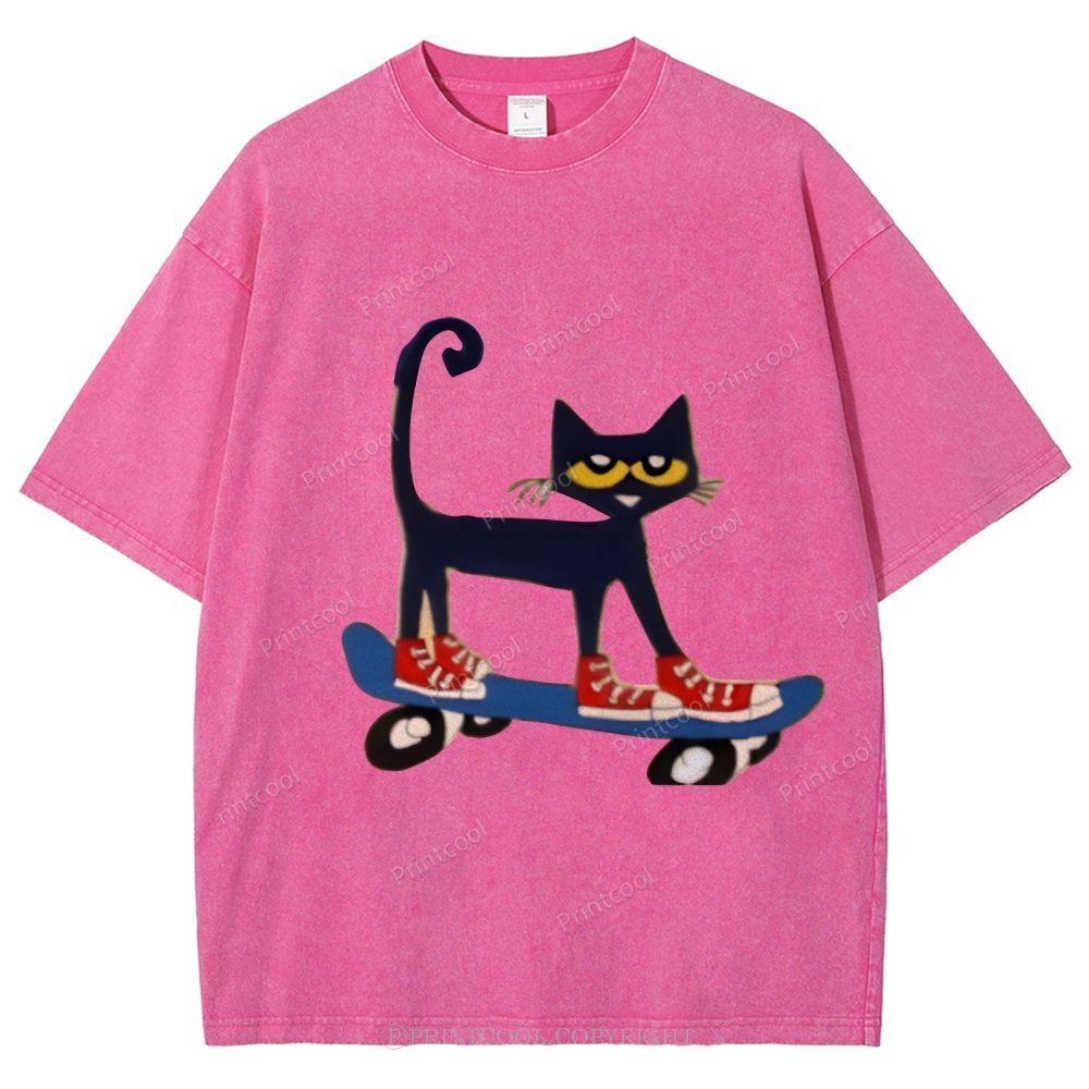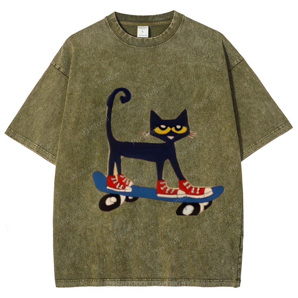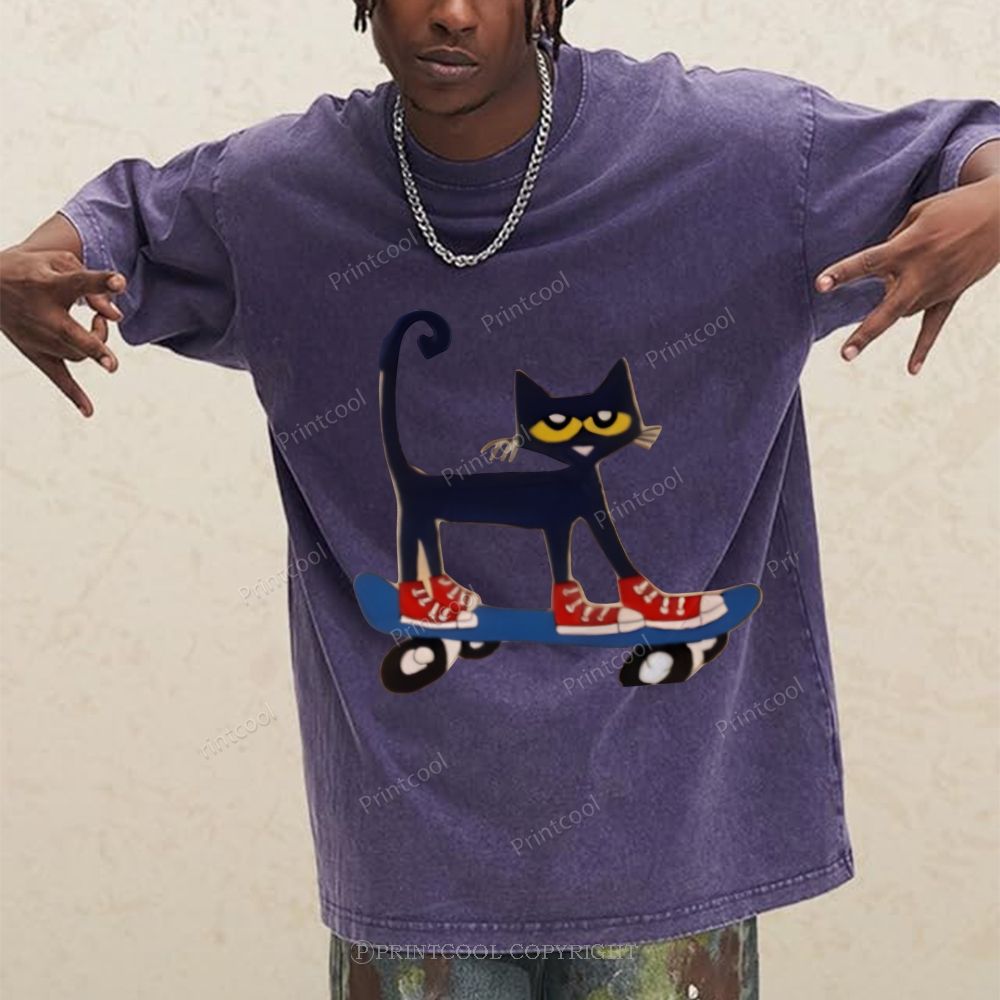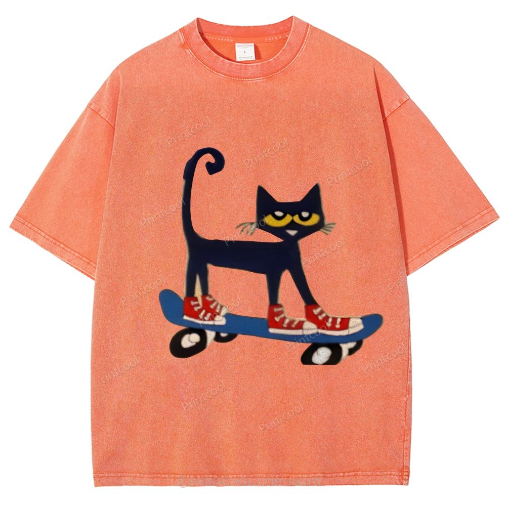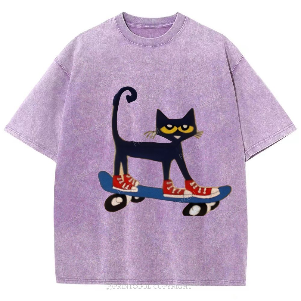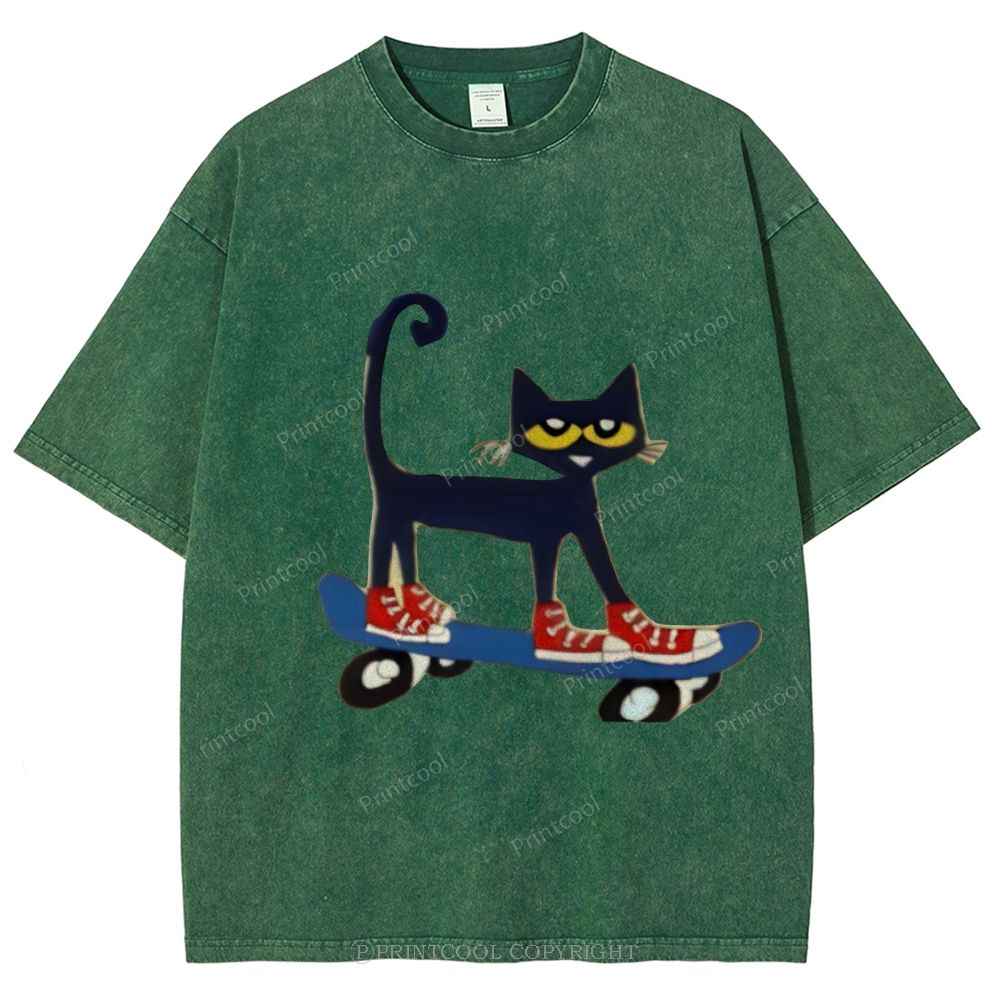 Skateboarding Pete The Cat Unisex Vintage Washed Tee