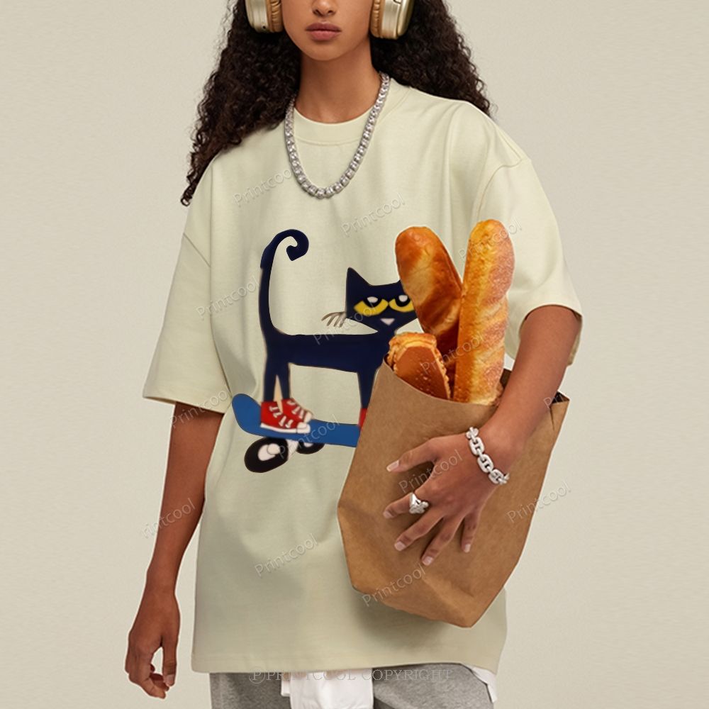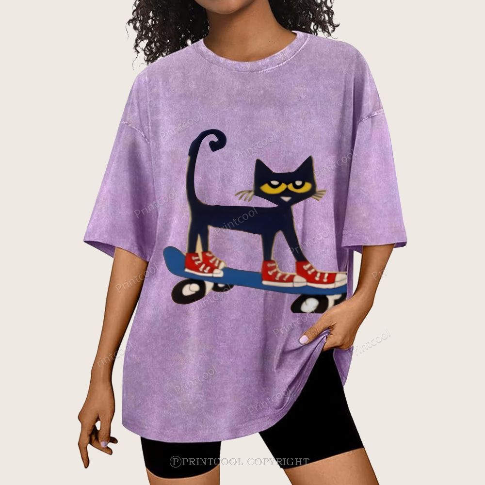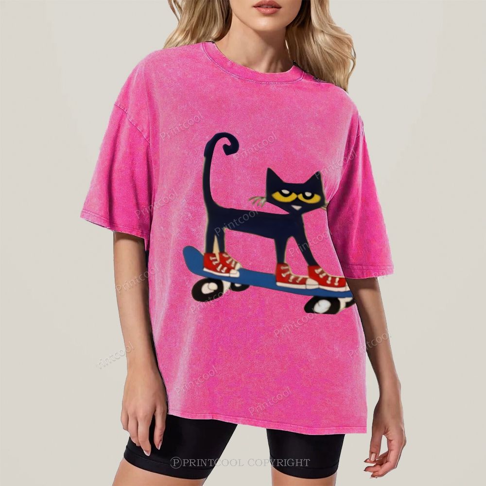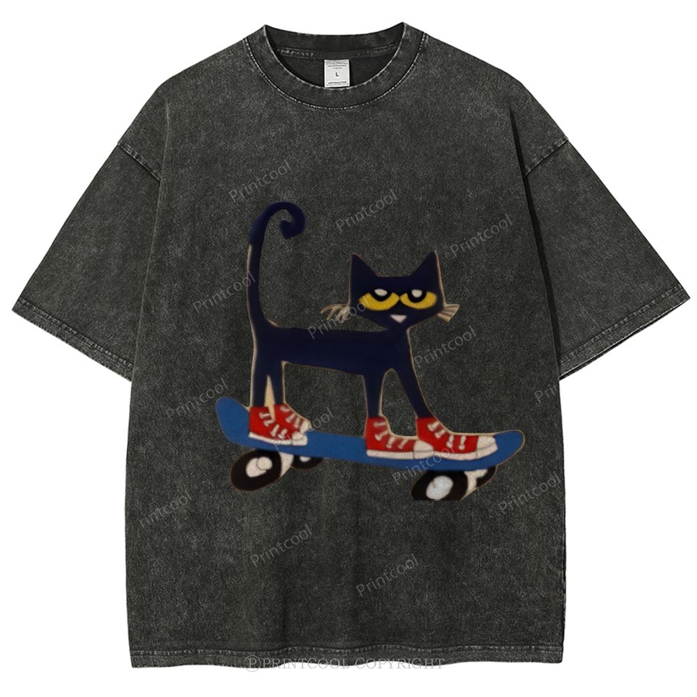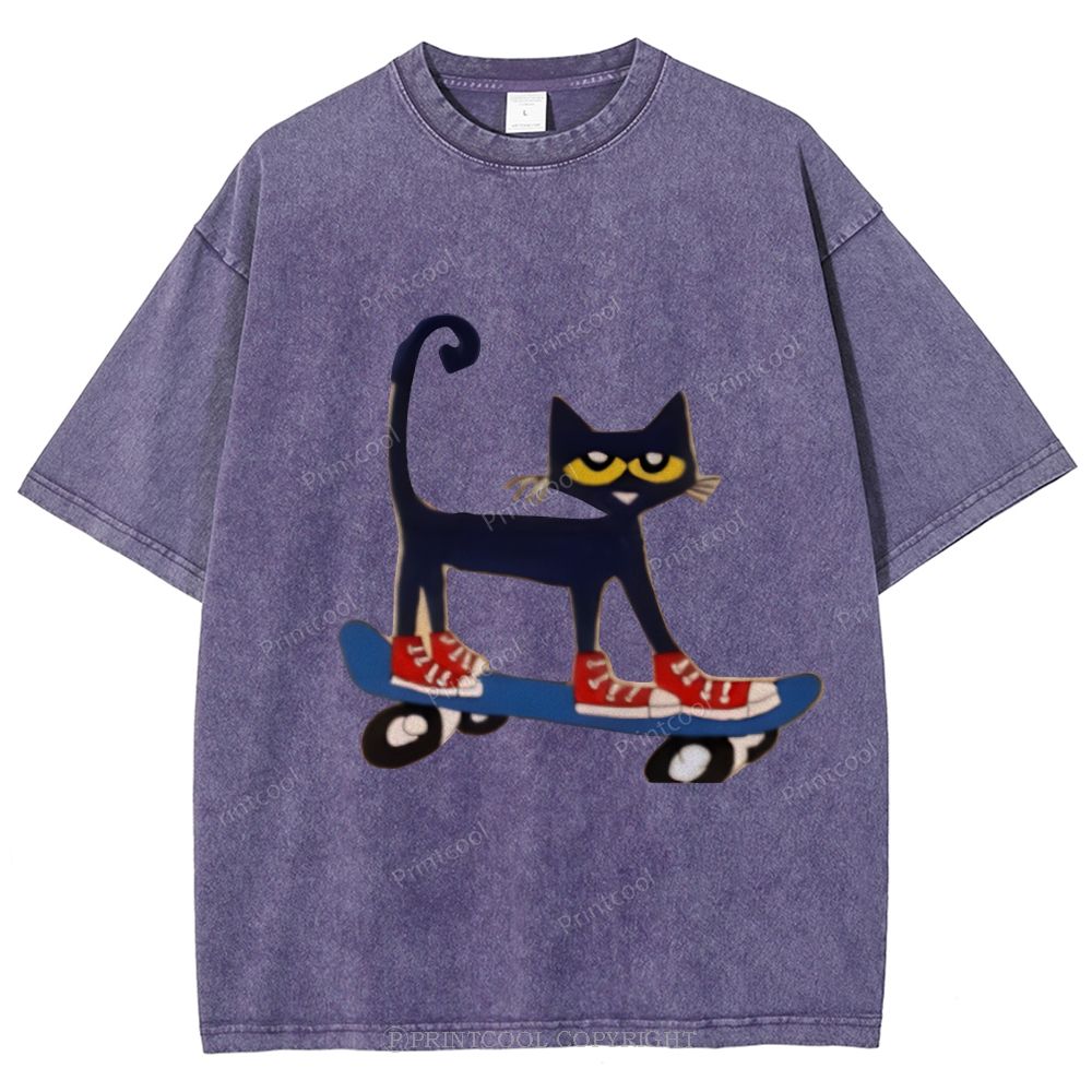 Skateboarding Pete The Cat Unisex Vintage Washed Tee