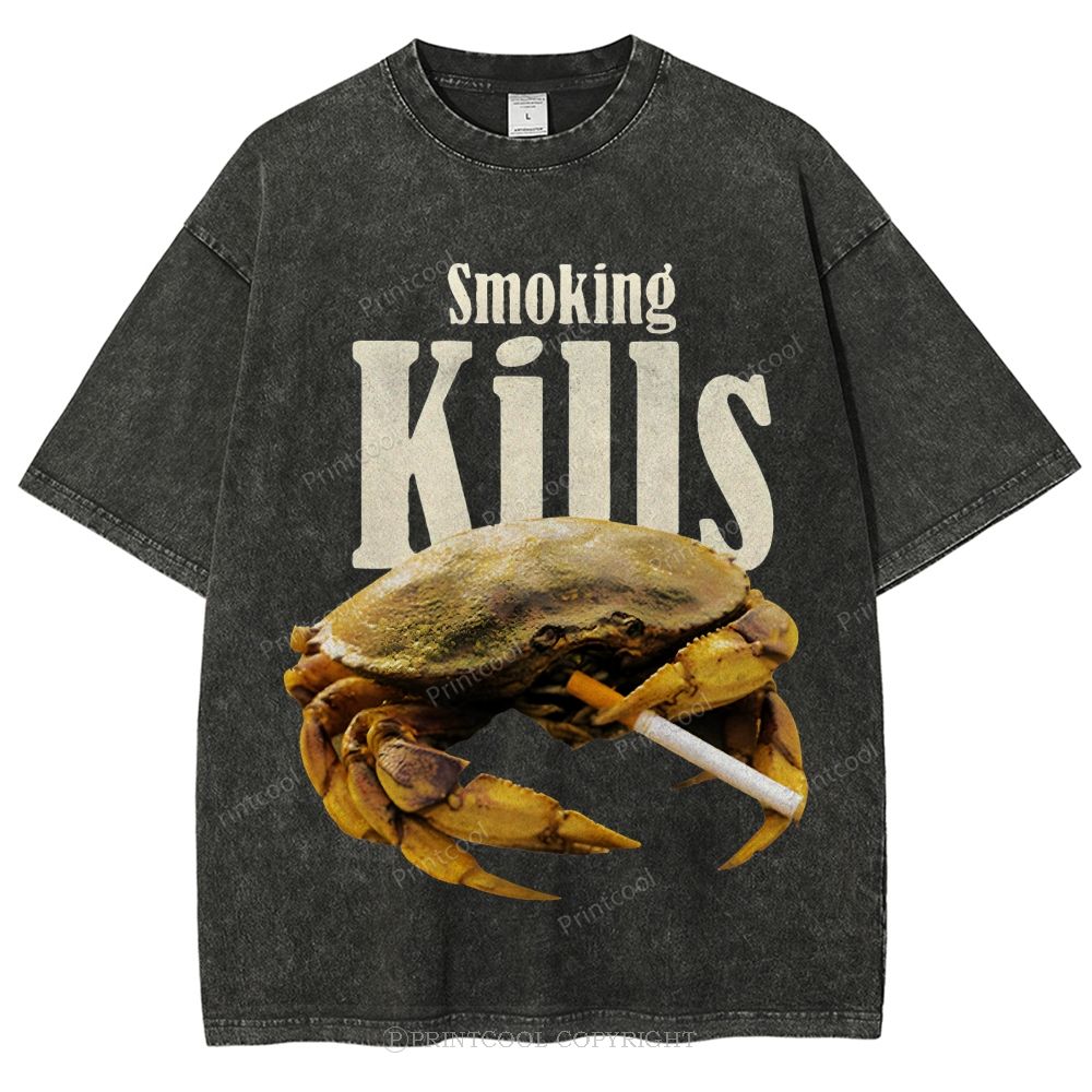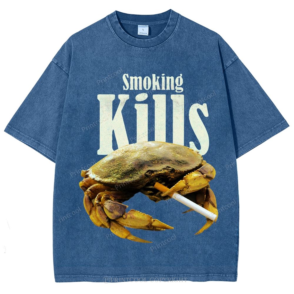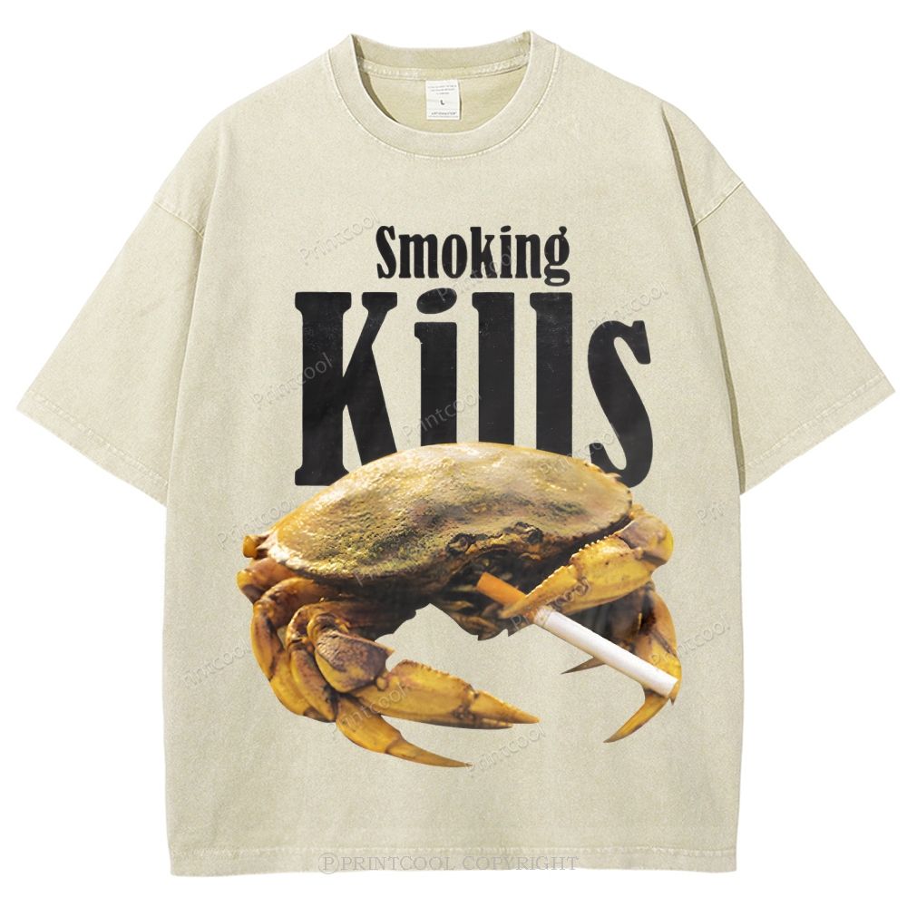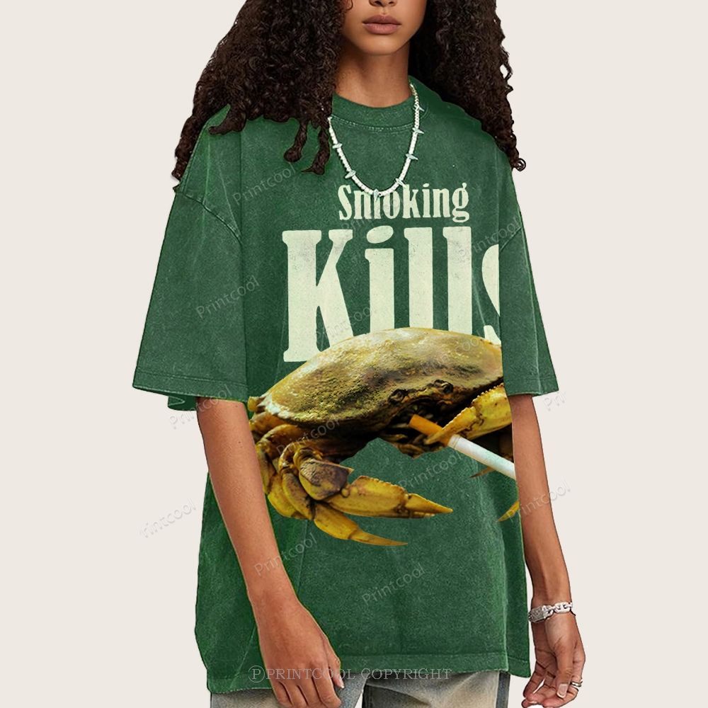 Smoking Kills Crab Meme Unisex Vintage Washed Tee