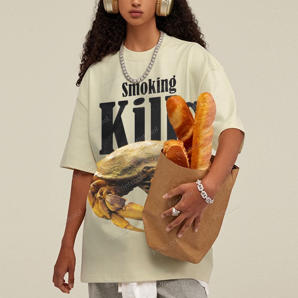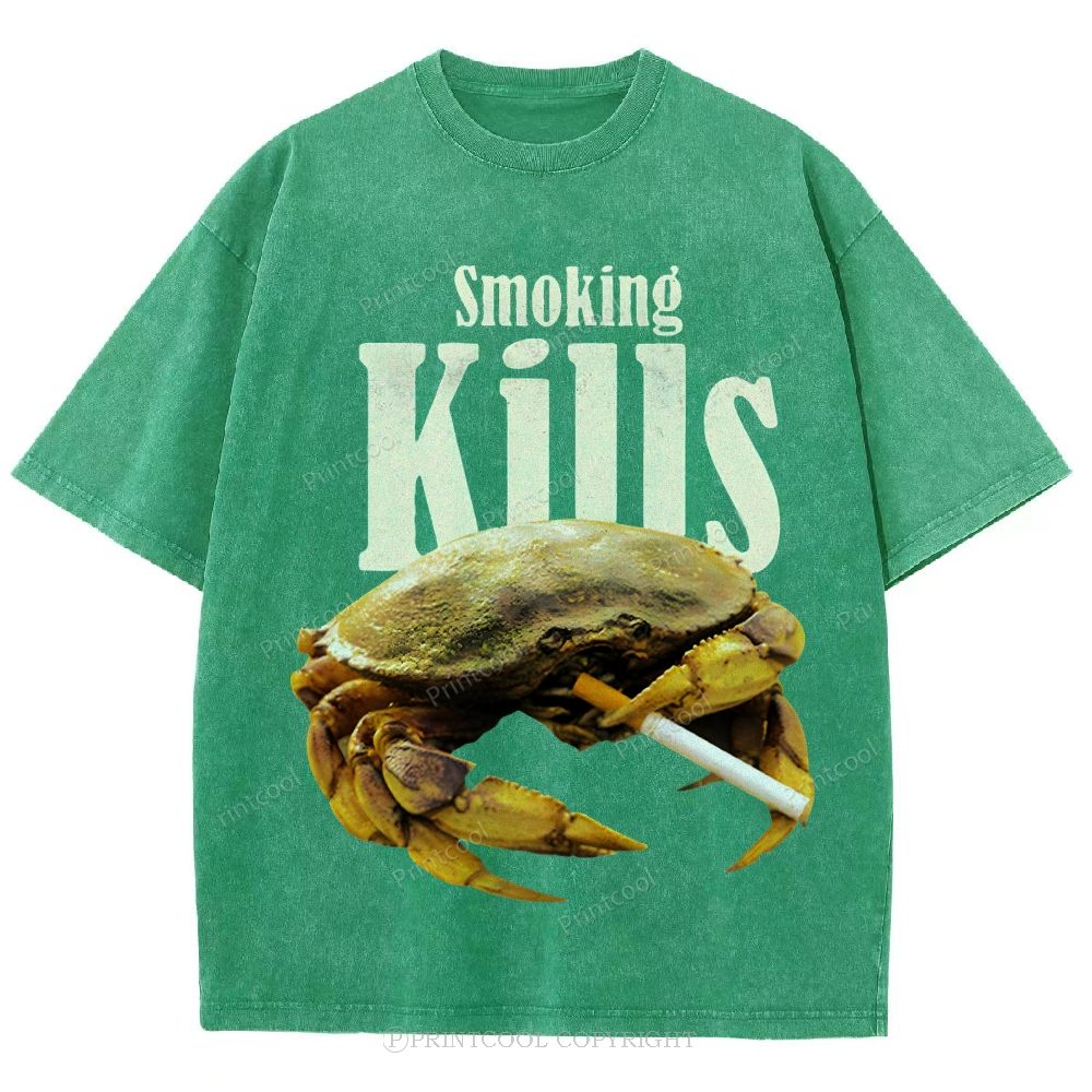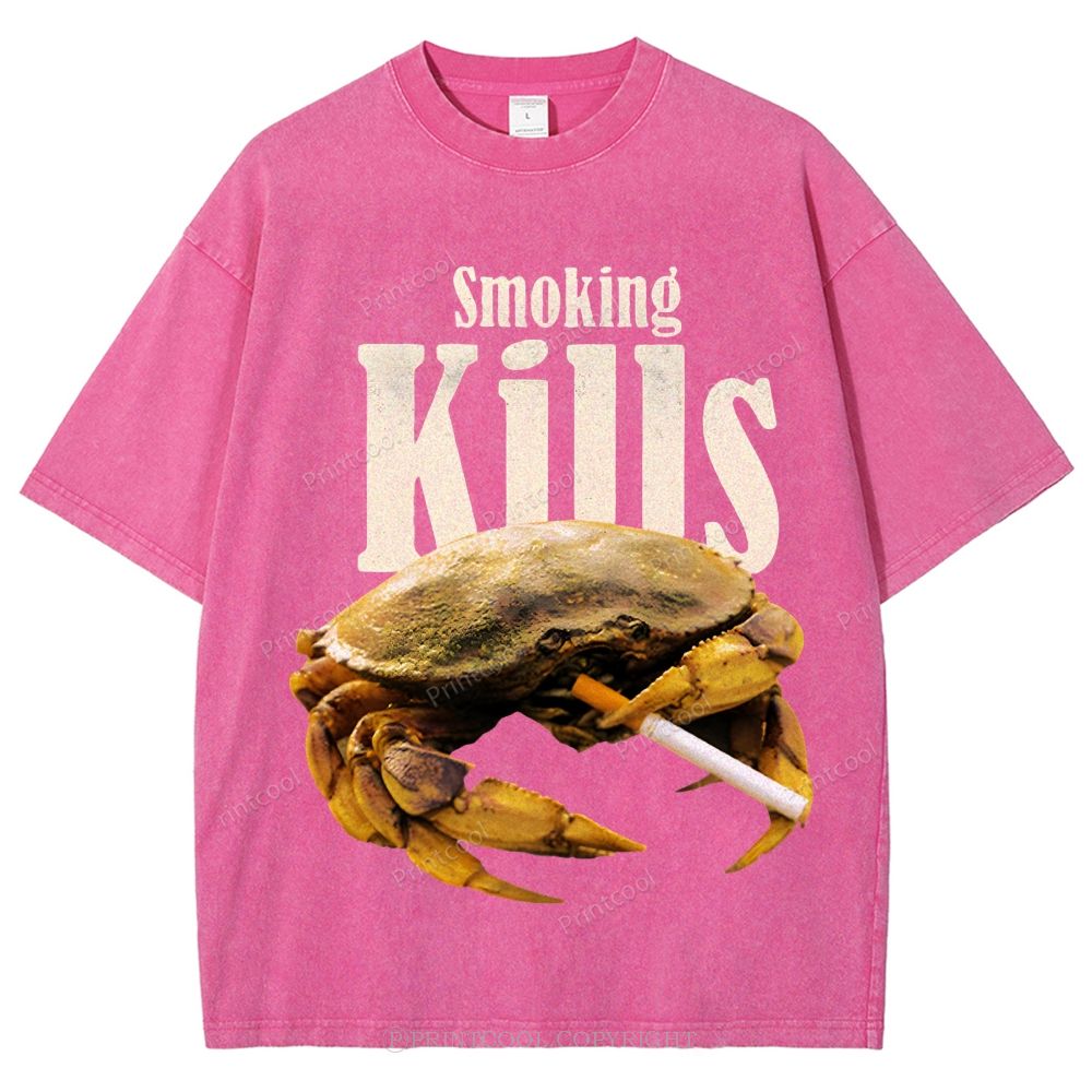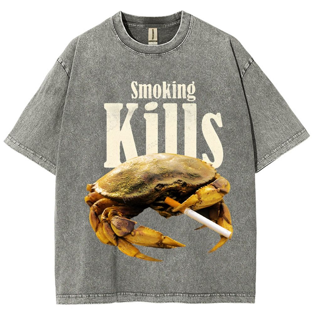 Smoking Kills Crab Meme Unisex Vintage Washed Tee