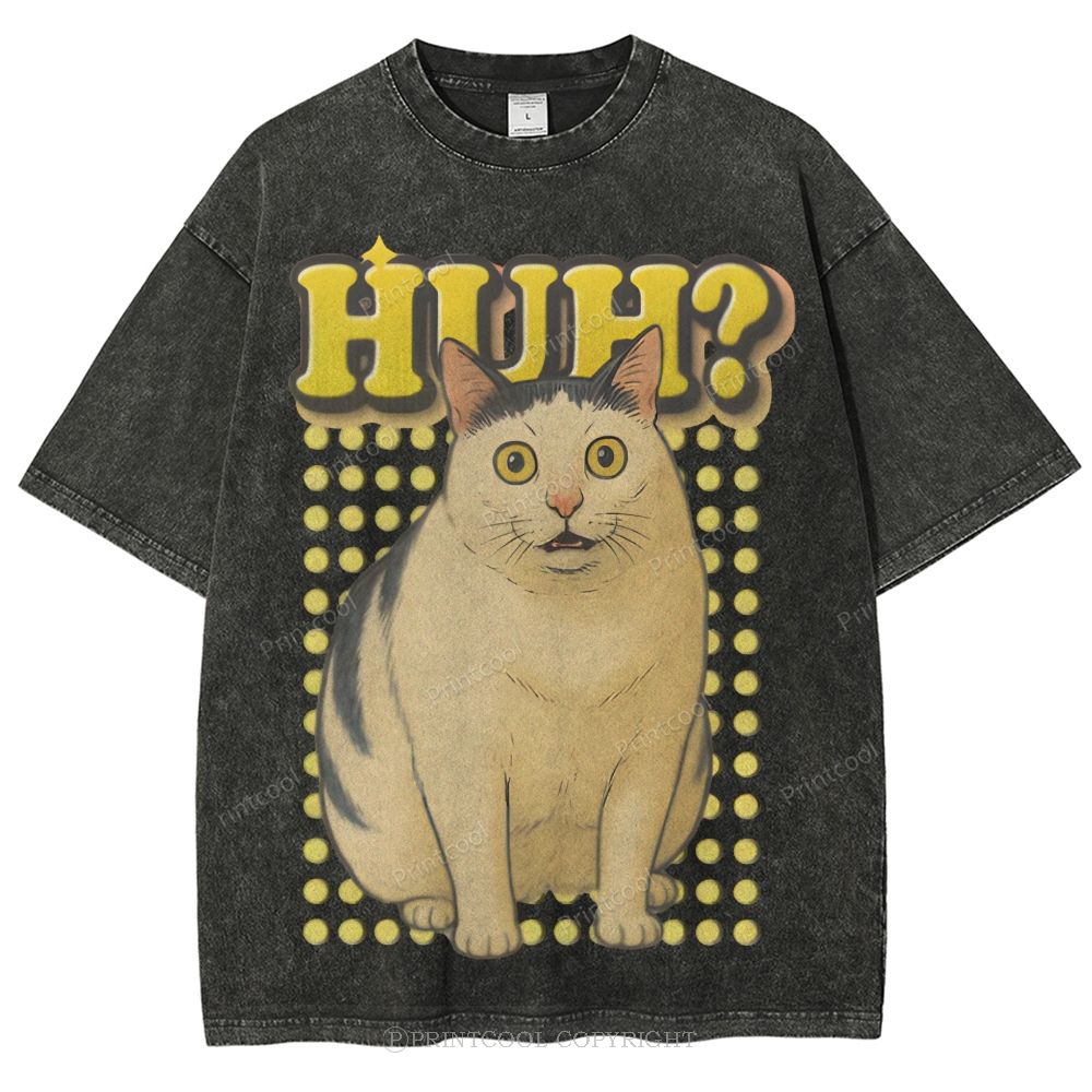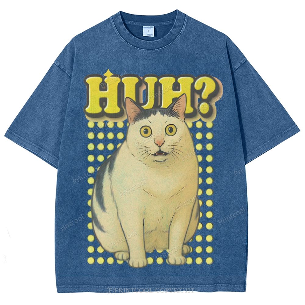 Vintage Huh Cat Meme Unisex Vintage Washed Tee