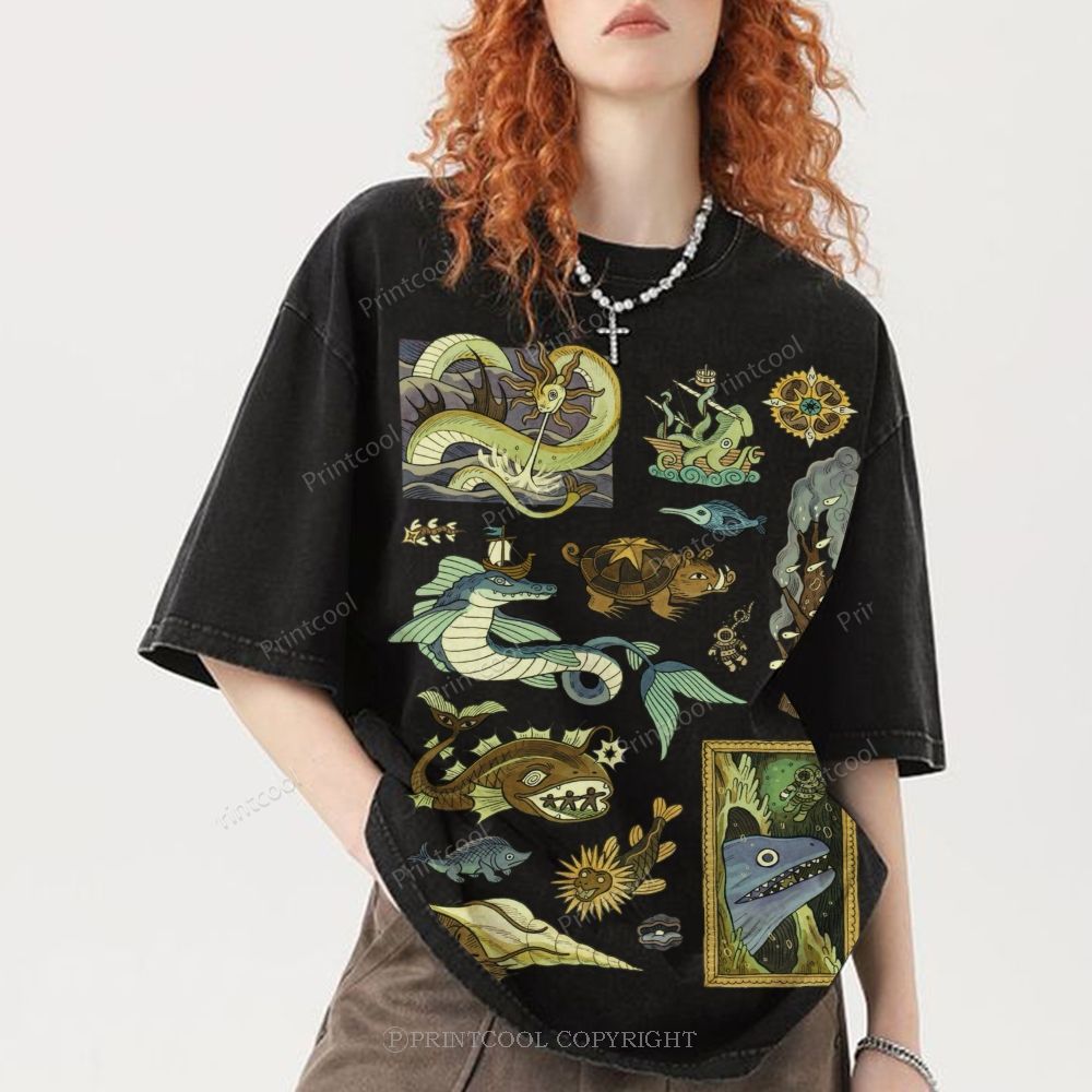 Vintage Sea Monster Unisex Vintage Washed Tee