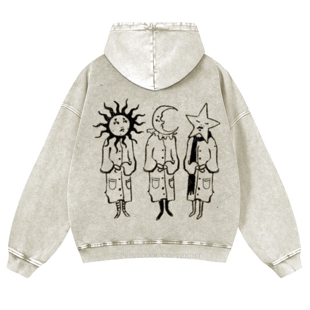 Vintage Sun Moon Star Anthropomorphic Casual Washed Hoodie