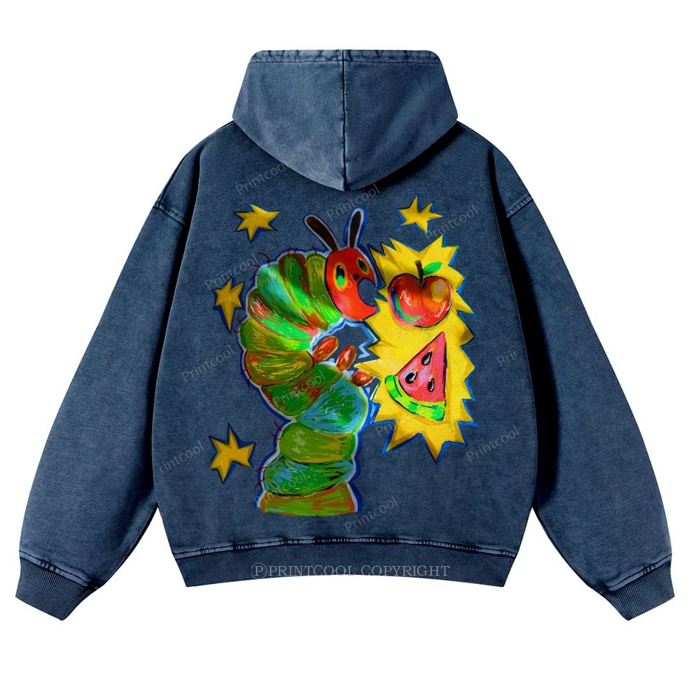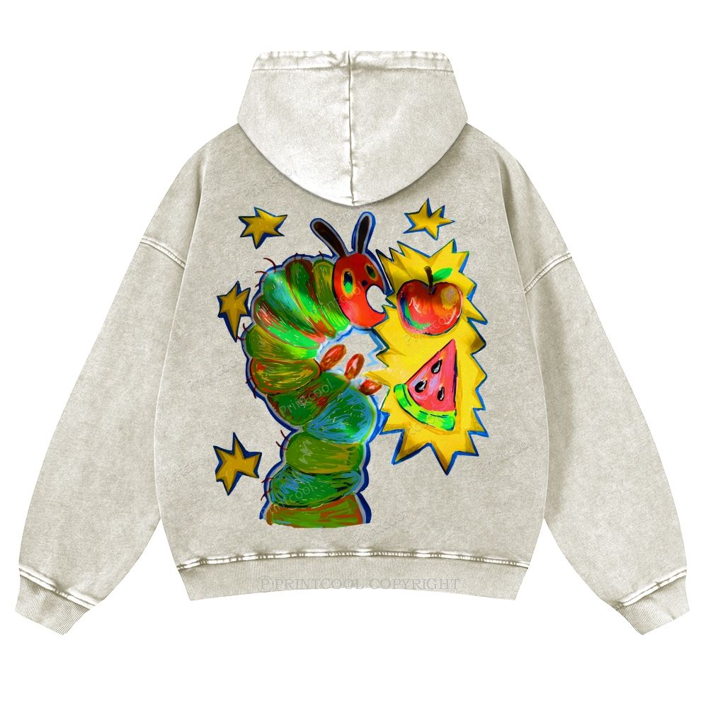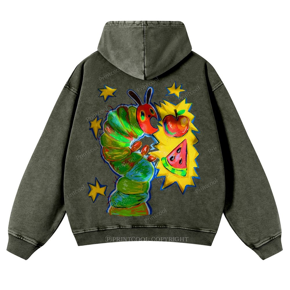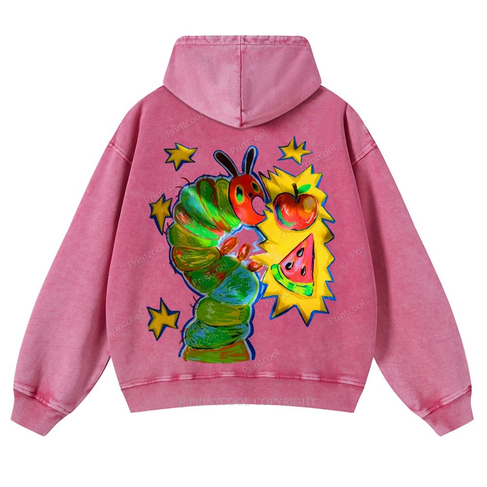 Whimsical Caterpillar Fruit Casual Washed Hoodie