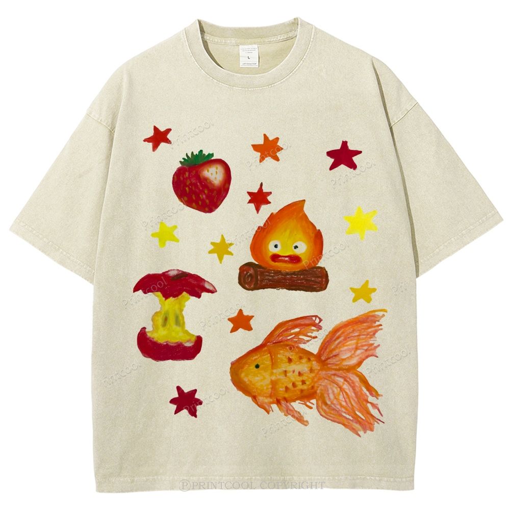 Whimsical Fire Demon Unisex Vintage Washed Tee
