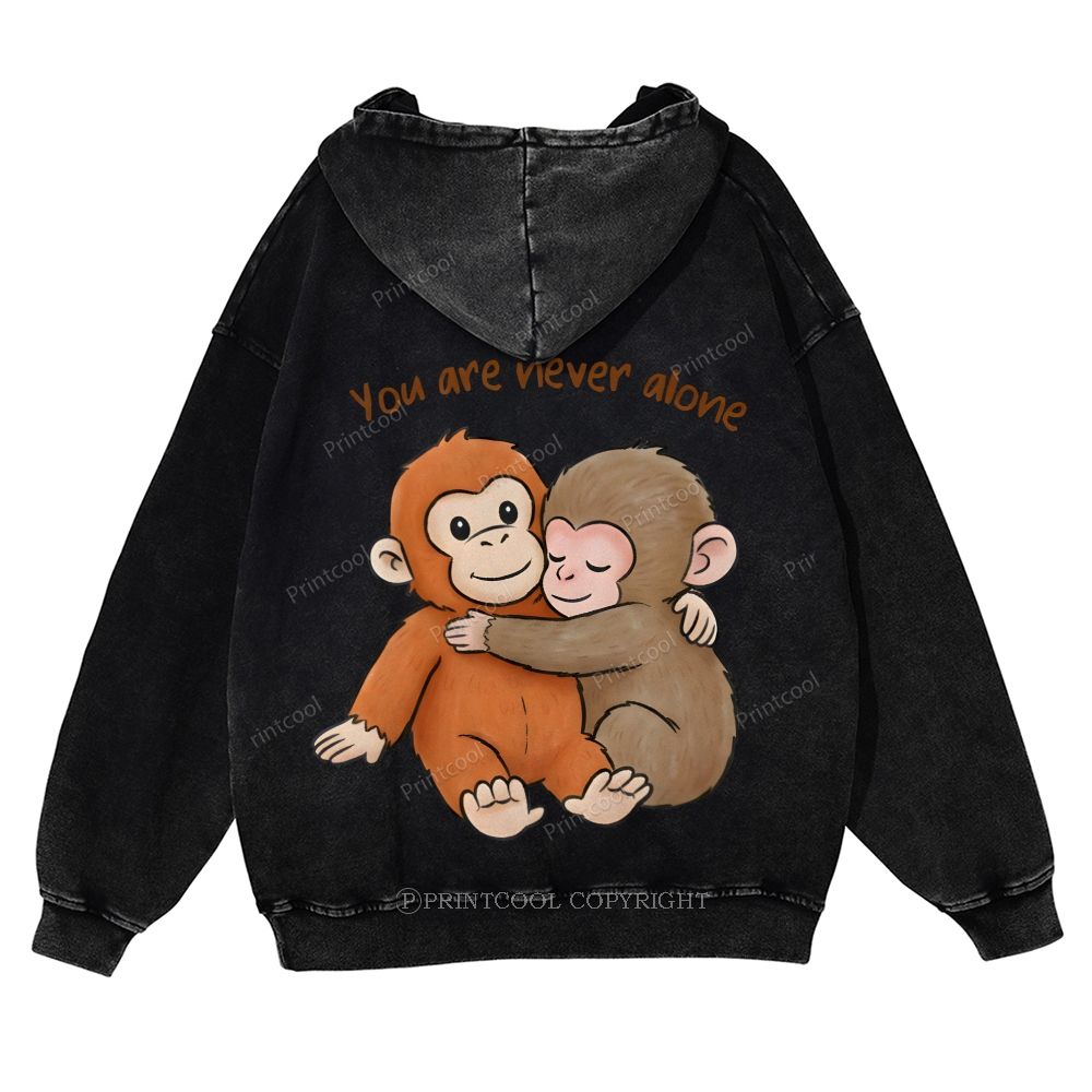 You Are Never Alone Casual Washed Hoodie